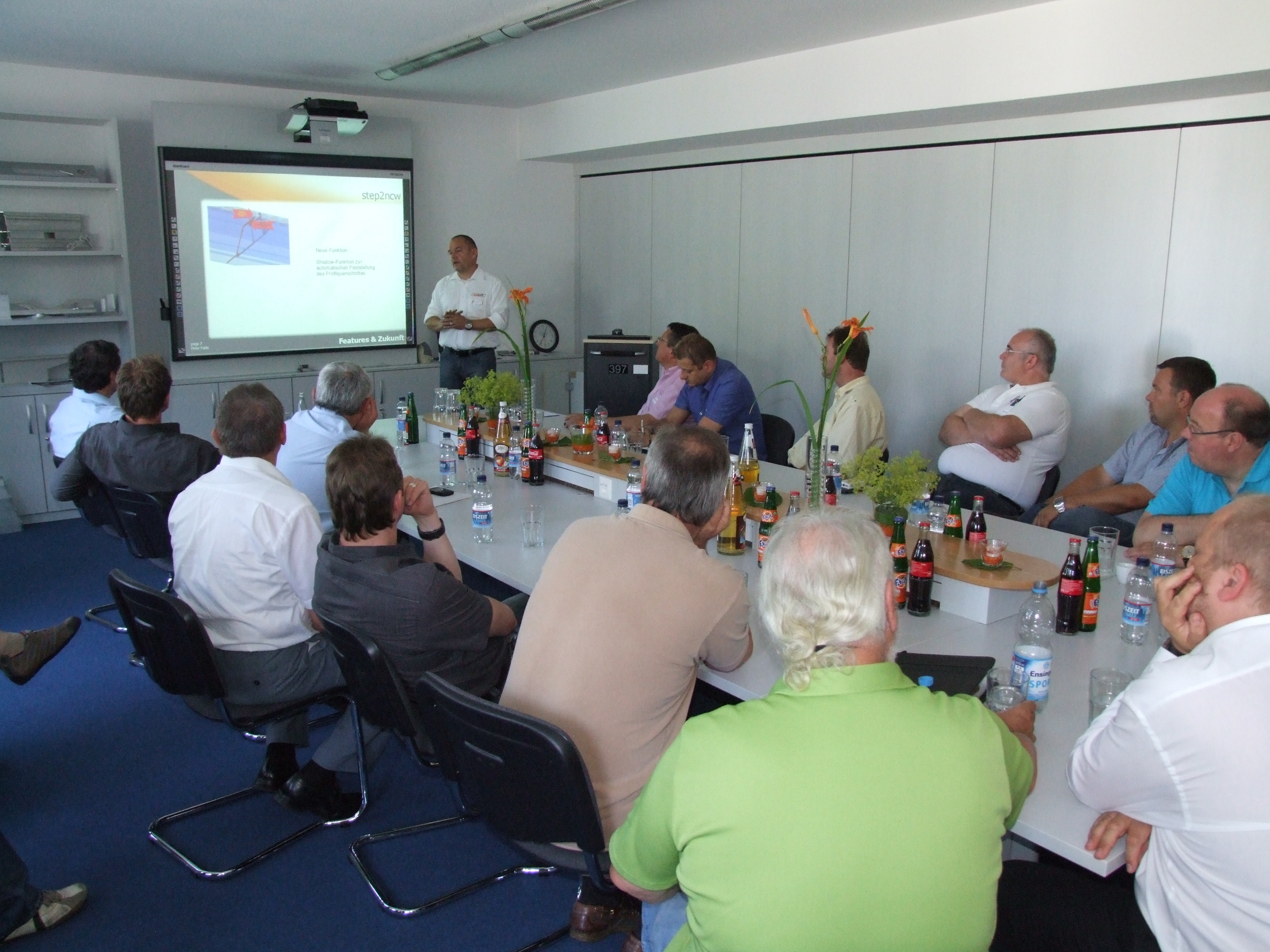 Peter Fürle, Geschäftsführer der elusoft GmbH, referiert über den 3 D-Konverter, der aus einem 3 D-Volumenkörper automatisch Bearbeitungen erkennt und programmiert