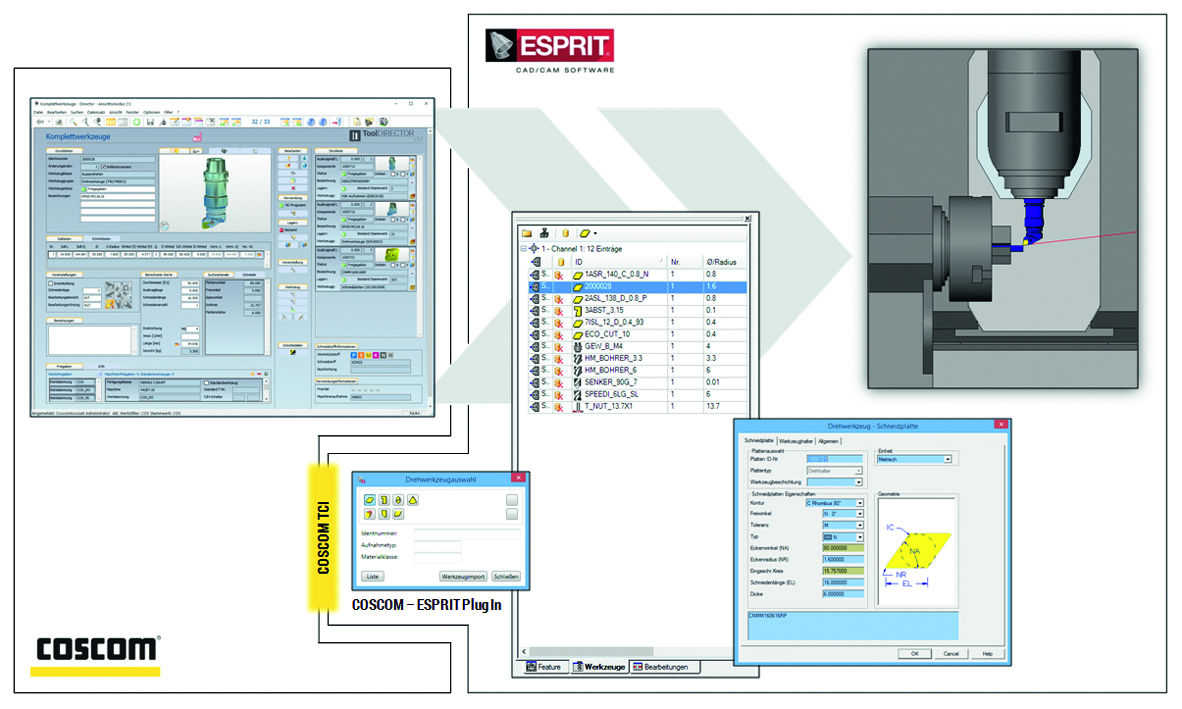 Die COSCOM TCI Datenplattform „connects“ ESPRIT CAD/CAM in den COSCOM Werkzeugdatenprozess - bis hin zur Rüstvorbereitung im operativen Shopfloor-Umfeld