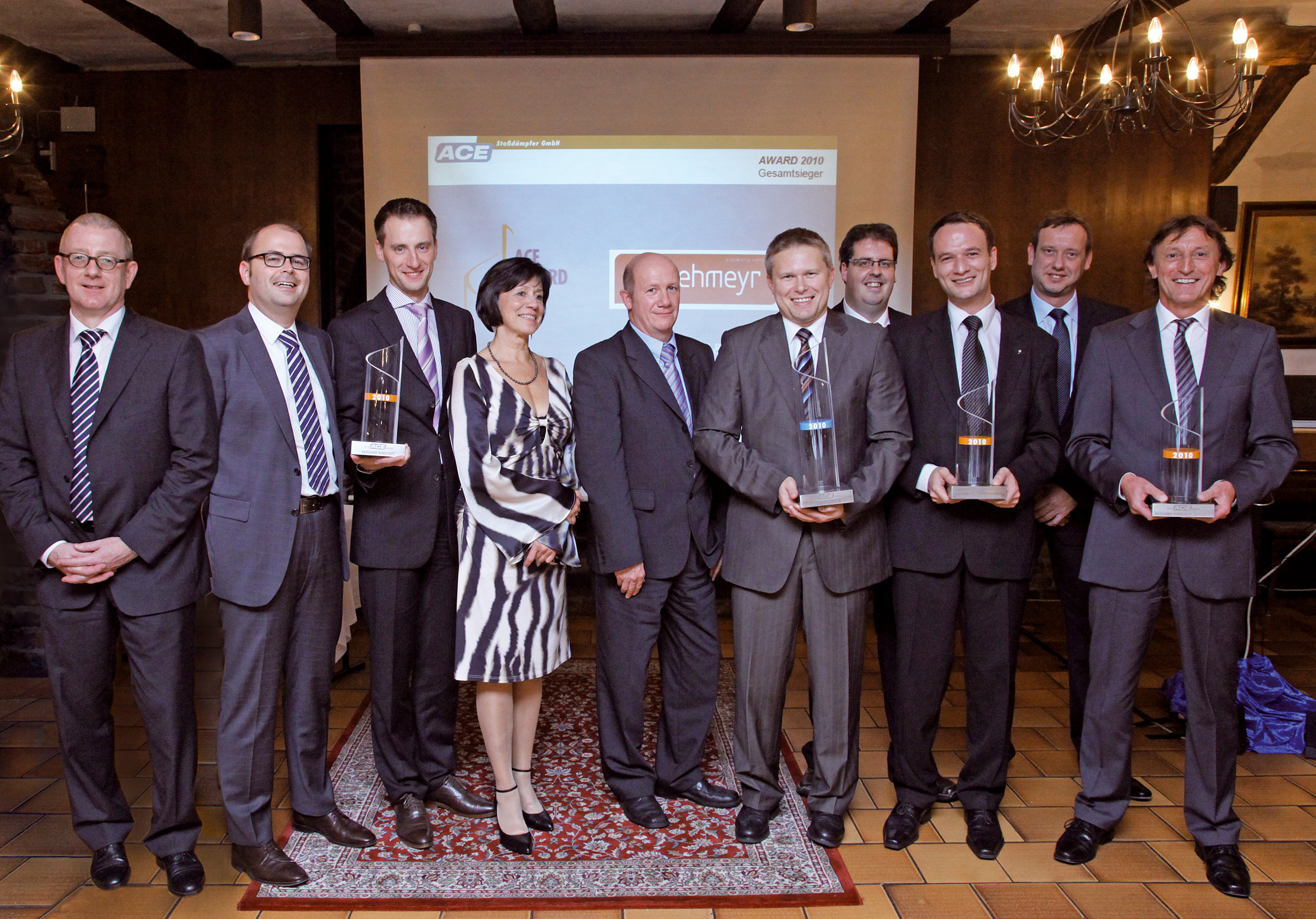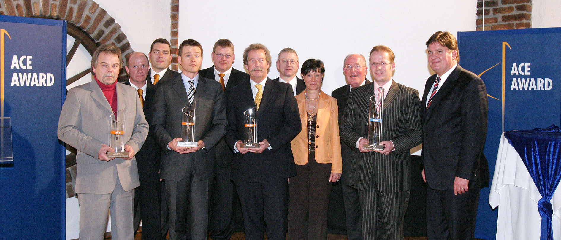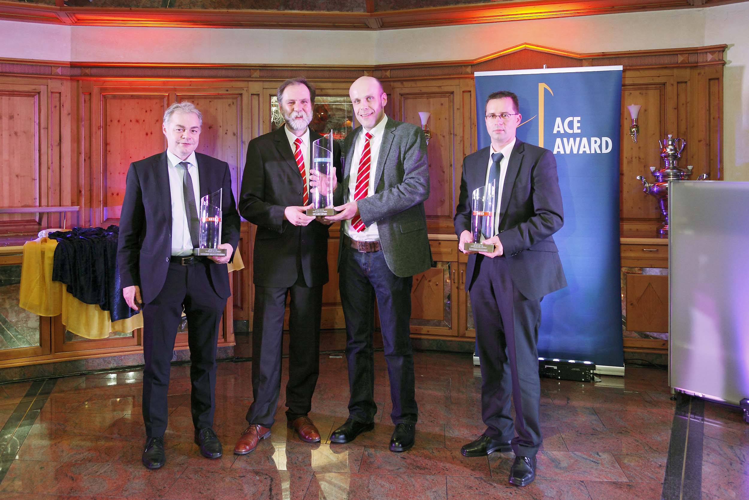 Preisträger der ACE Awards 2017 (v. l. n. r.): Jürgen Arend, Vertriebsleiter ACE, Thomas Gerhards, Key Account Manager ACE, Peter Mayr, Prokurist Nold Hydraulik & Pneumatik, Preisträger in den Kategorien Bonusheftnutzung und Kundenzufriedenheit, Stefan Boie, Geschäftsführer Boie GmbH Fachgroßhandel, Gesamtsieger, Jürgen Roland, Geschäftsführer ACE