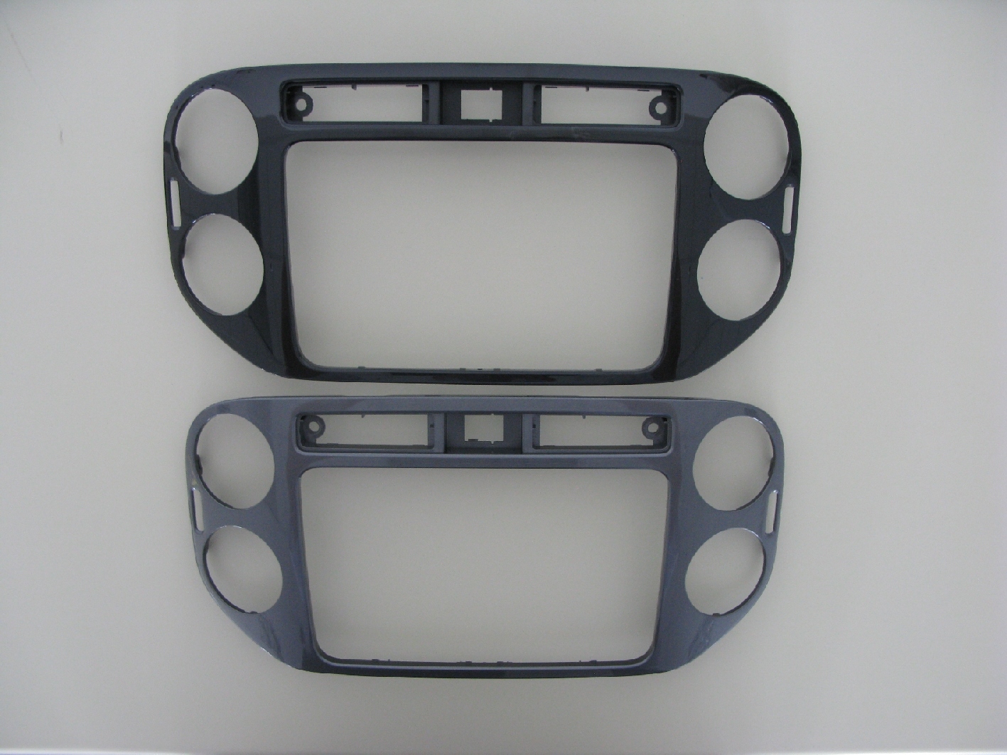 A corporate philosophy of the Volkswagen concern is to increase sustainability and cost-efficiency as well as to constantly improve quality and work conditions. The development and manufacture of interior components such as panels, trims, ventilation grilles and air diffusers at Volkswagen Plastics Technology, which no longer need to be painted or only require the application of a single layer of paint, are additional factors. One of the components produced is a decorative panel made of ABS-PC blend (ABS - Acrylonitrile-Butadiene-Styrene, PC – Polycarbonate). Although the part already has a high-gloss surface on leaving the injection-molding machine, it is subsequently coated with a layer of high-gloss metallic paint to give it a sophisticated finish.