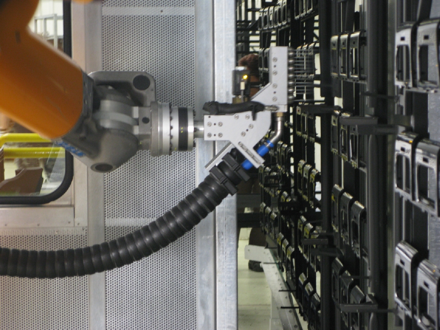 The project managers at Volkswagen and acp developed a customized system configuration in line with the range of components produced at Plastics Technology in Braunschweig. It is made up of a nozzle array containing seven cleaning nozzles and controlled by a robot. Workpiece-specific cleaning programs are filed for each of the approximately 20 different interior components which need to be cleaned. The cleaning system has been integrated into a booth fitted with a continuous extraction unit. This prevents cleaned parts from becoming recontaminated by dirt which has been removed.