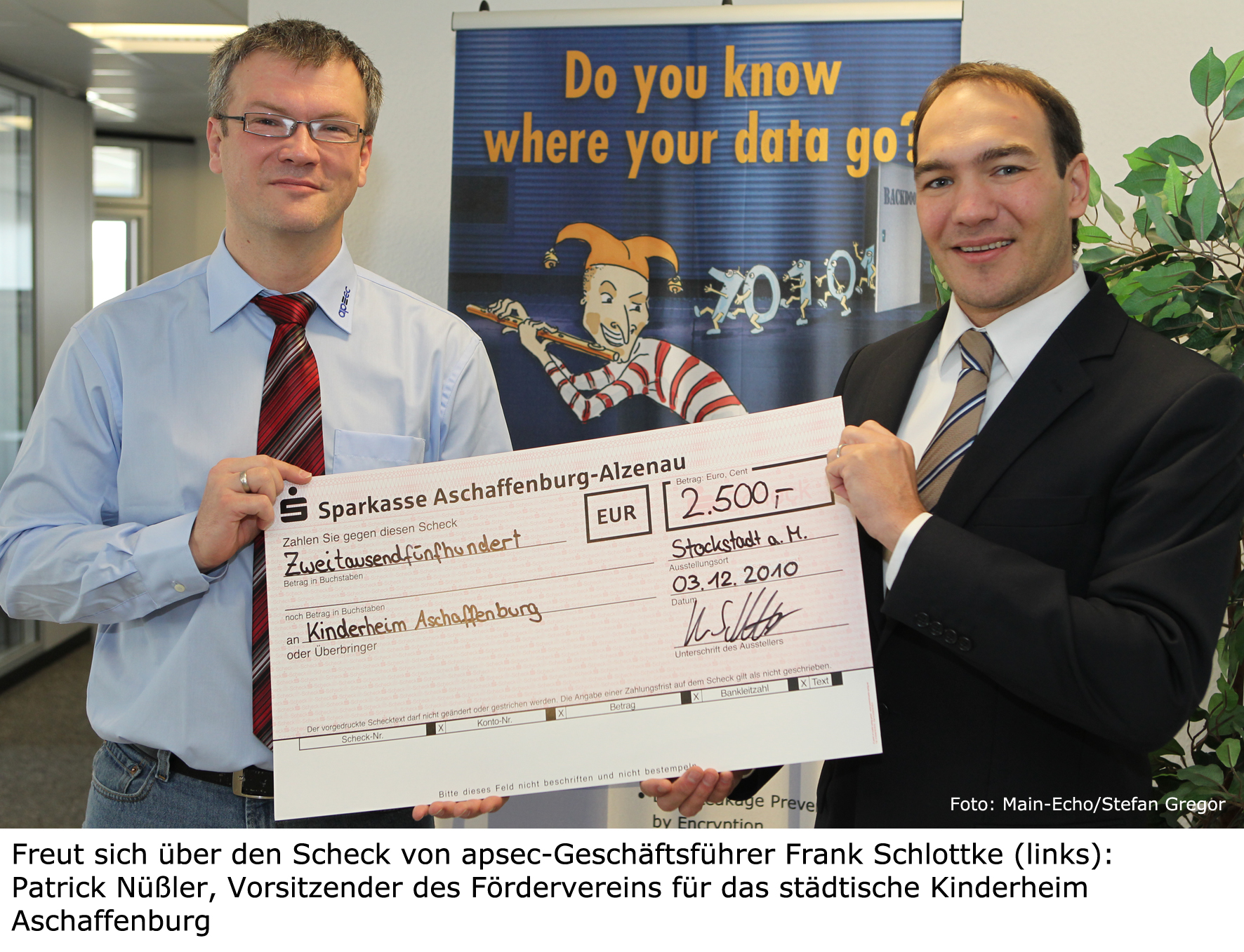 Freuen sich über den Scheck von apsec-Geschäftsführer Frank Schlottke: Hella Stock, 2. Vorsitzende der Hospizgruppe Aschaffenburg (mitte) und Ursula Groha, ehrenamtliche Hospizbegleiterin