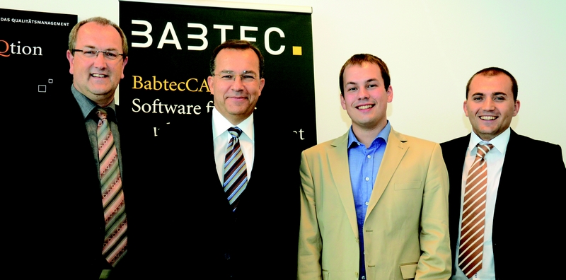 Die neue Babtec-Geschäftsleitung, v.l.n.r.: Michael Flunkert (Gründer und Geschäftsführer), Waios Kastanis (Geschäftsführer), Dagmar Henkel (Human Ressources), Lutz Krämer (Bereich Produkte), Peter Hönle (Bereich Vertrieb und Services)