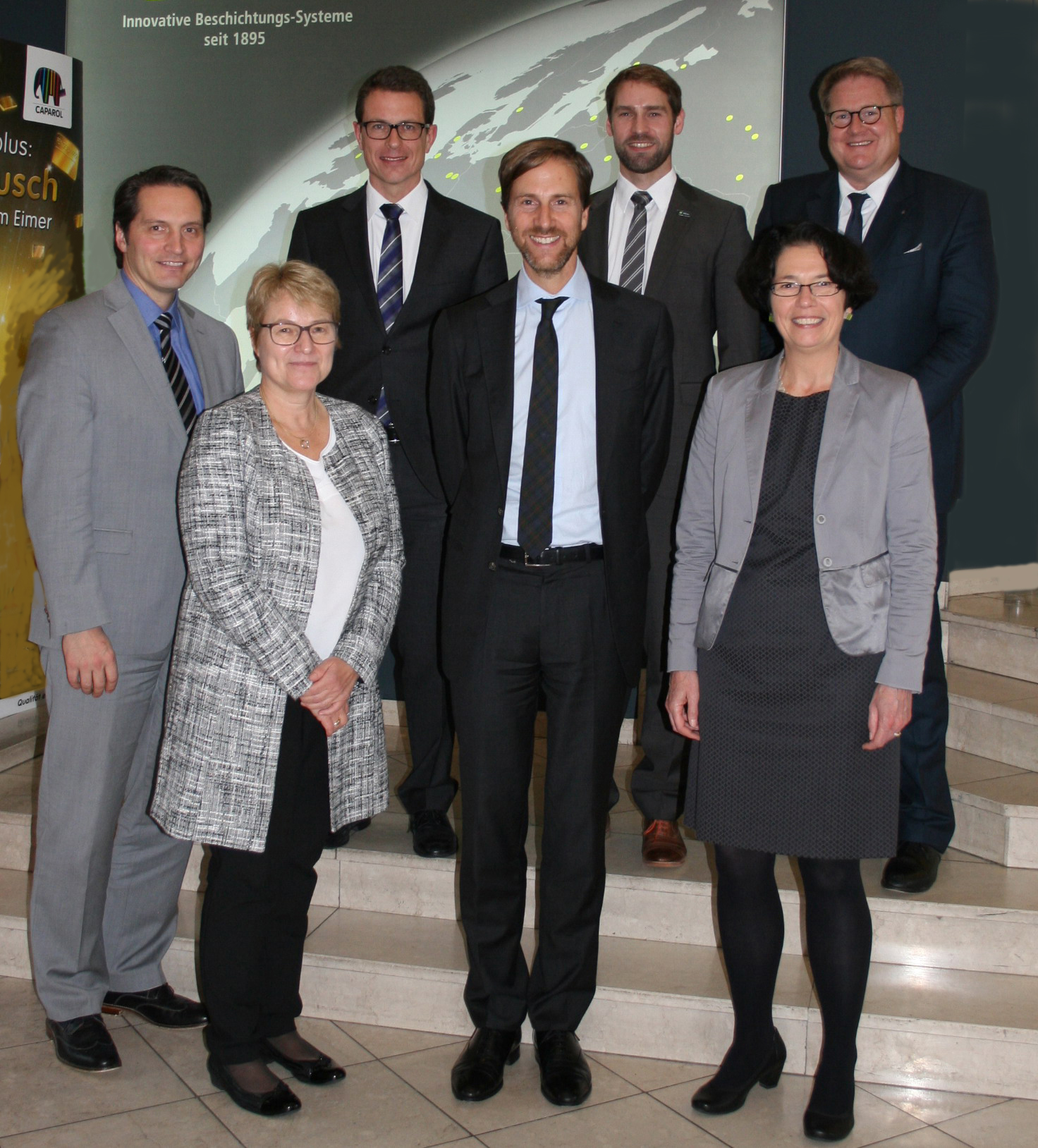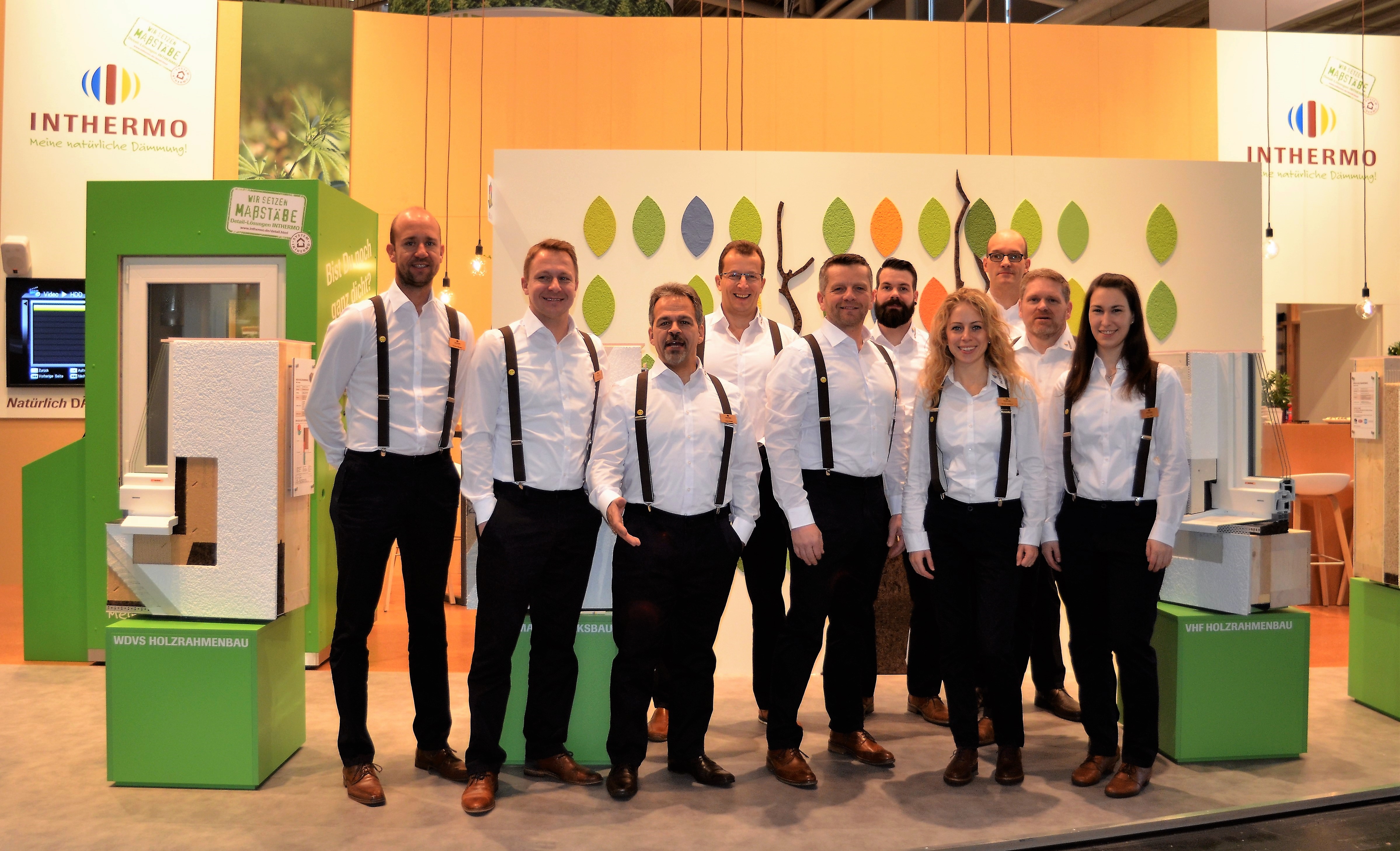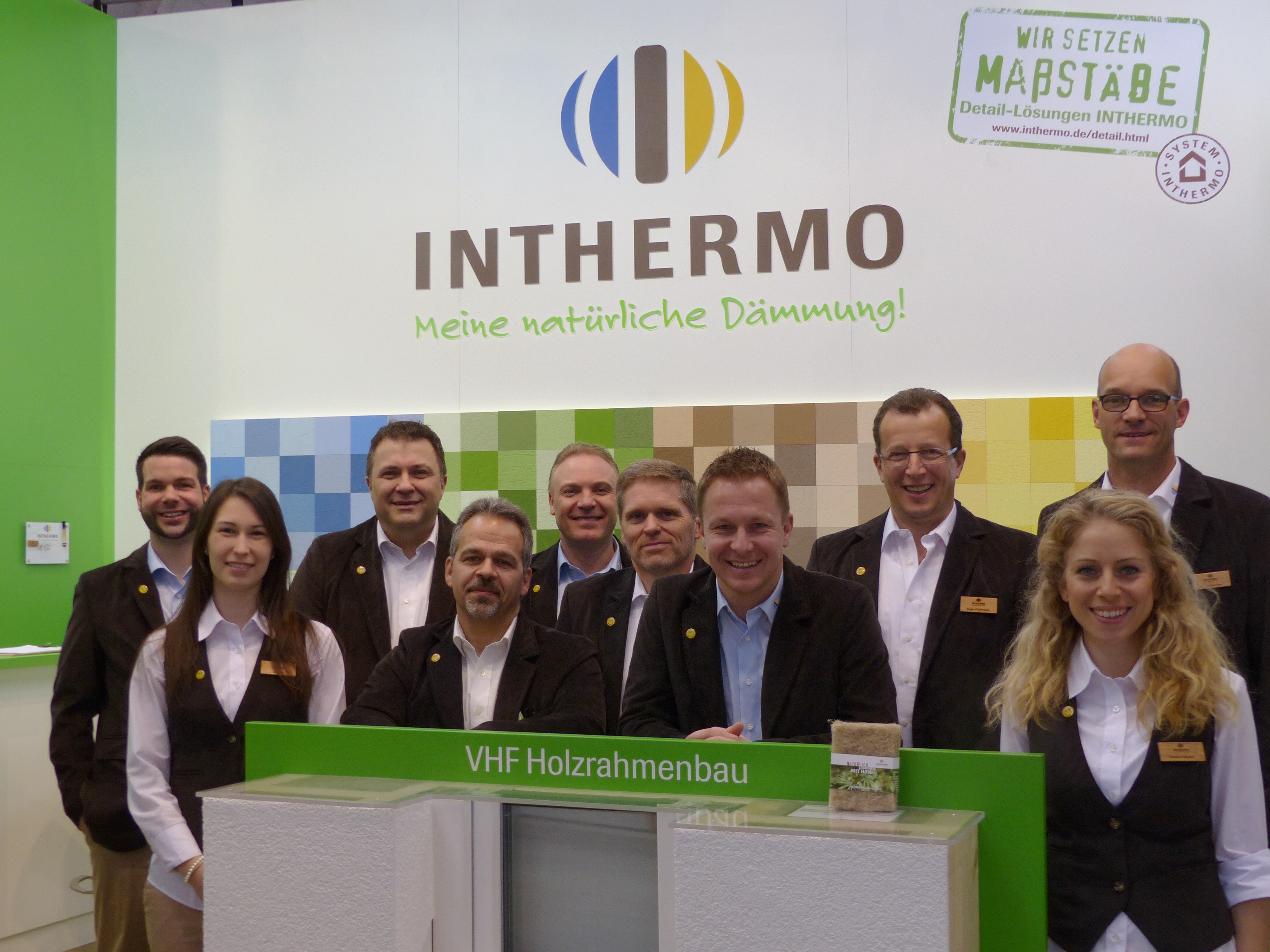 Auf starkes Wachstum eingestellt! Rund um das Dämmen von Fassaden widmete sich das INTHERMO-Team auf der BAU in München ungezählten Kundenfragen, Anliegen und Wünschen (v.l.n.r.): Andreas Billmayer, Fachberater für Rheinland-Pfalz und Westfalen, INTHERMO-Geschäftsführer und Vertriebsleiter Stefan Berbner, Lorenz Stöpfel, Fachberater für Mittel- und Südbayern, Jürgen Waßermann, Leiter Technik, Stefan Radtke, Fachberater für Baden-Württemberg, Sebastian Schmucker, technischer Kundenberater, Marketing-Leiterin Kerstin Kufleitner, Markus Normann, Fachberater für Norddeutschland, Matthias Roth, Fachberater für Hessen und Nordbayern, sowie Lara Heid, Assistentin der Geschäftsleitung. Ebenfalls für INTHERMO auf der BAU dabei war Markus Blau, techn. Produktbetreuer. (Foto © 2017: Achim Zielke für INTHERMO, Ober-Ramstadt; www.inthermo.de)