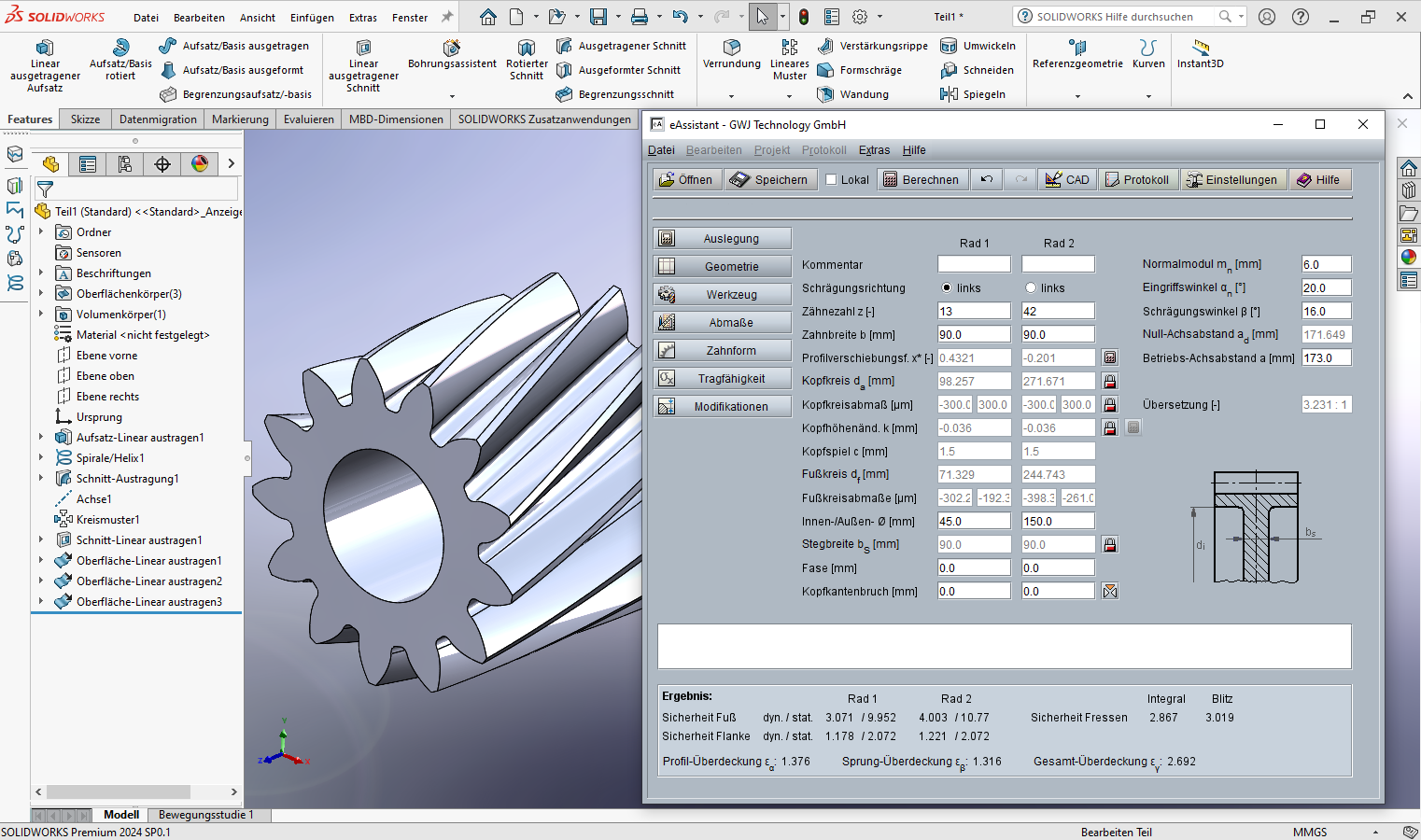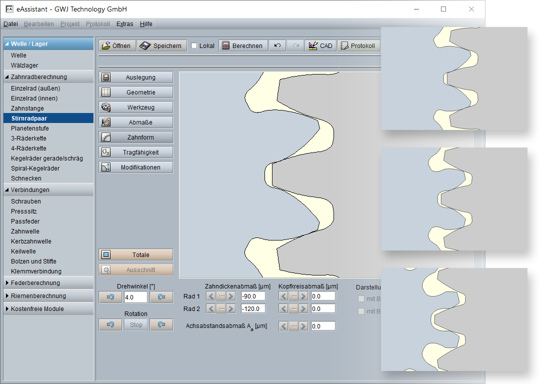 eAssistant-Software: Auslegungsfunktion im Stirnradpaarmodul