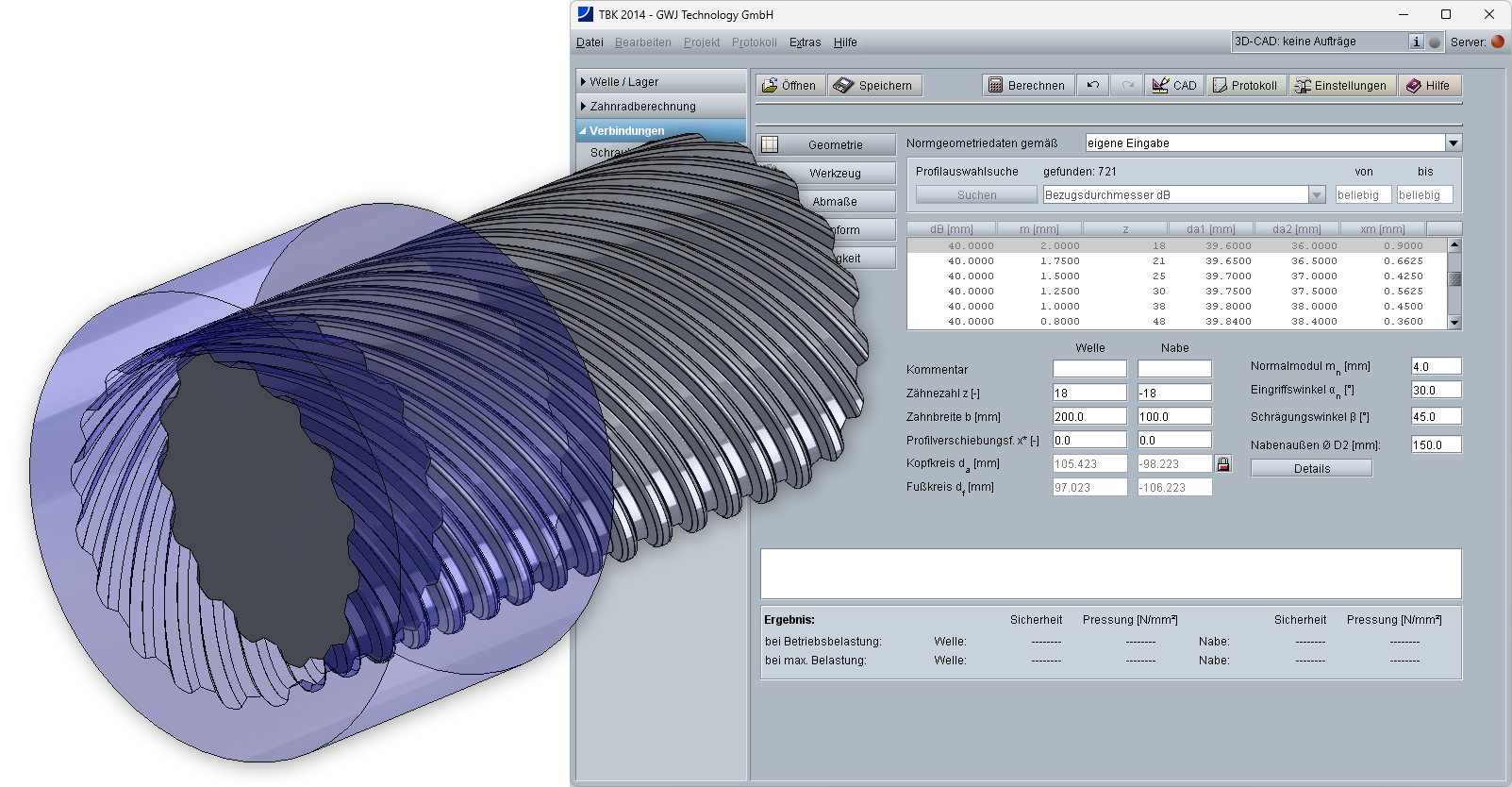 Berechnungsmodul für Zahnwellen im eAssistant