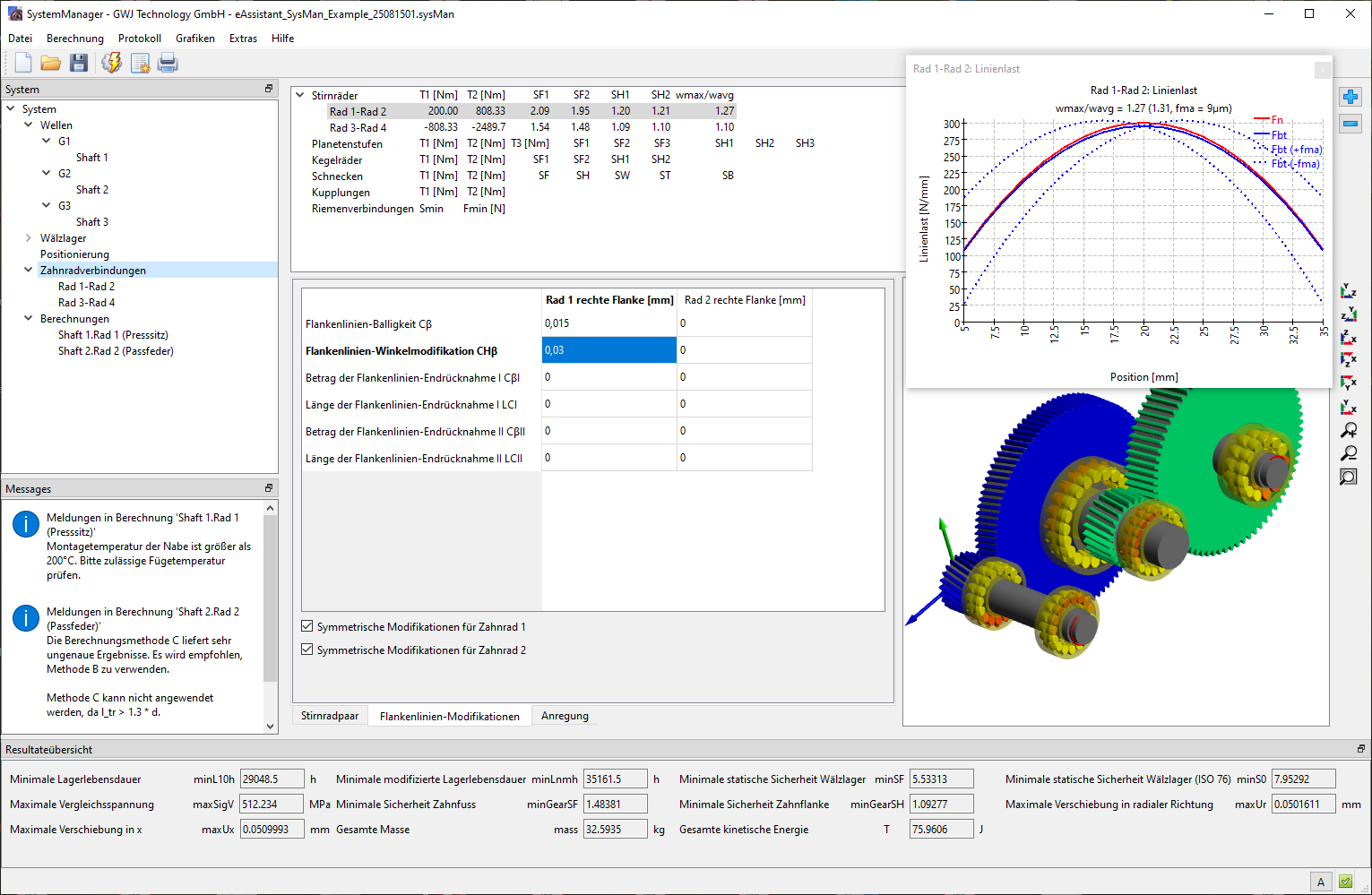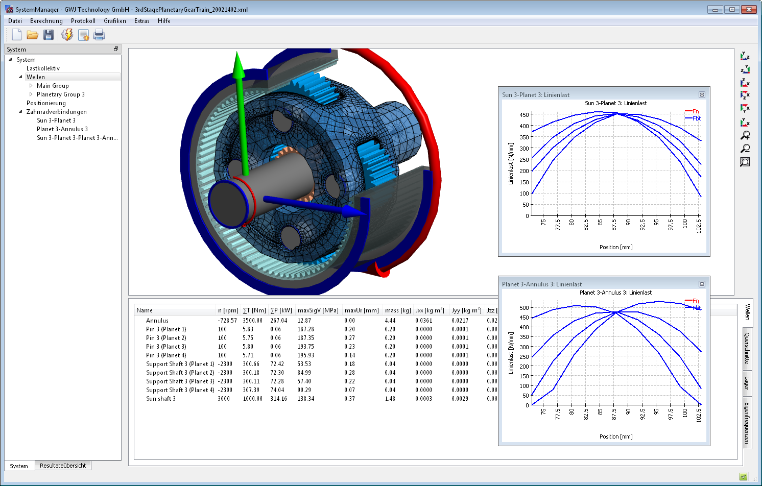 GWJ SystemManager - Planetenstufe mit Linienlastverläufen