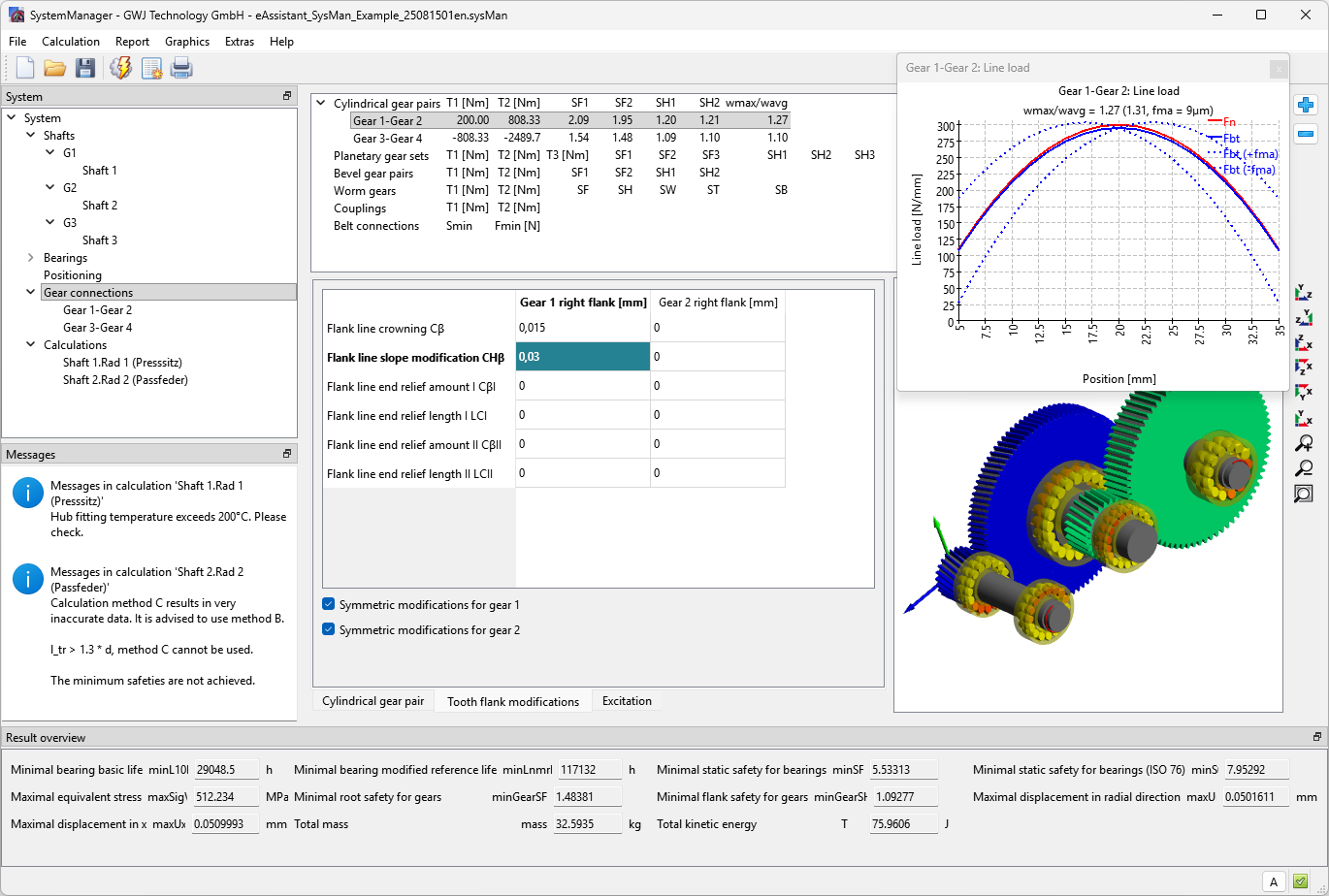 GWJ SystemManager - Planetary Gear Train with line load for optimization of flank modifications
