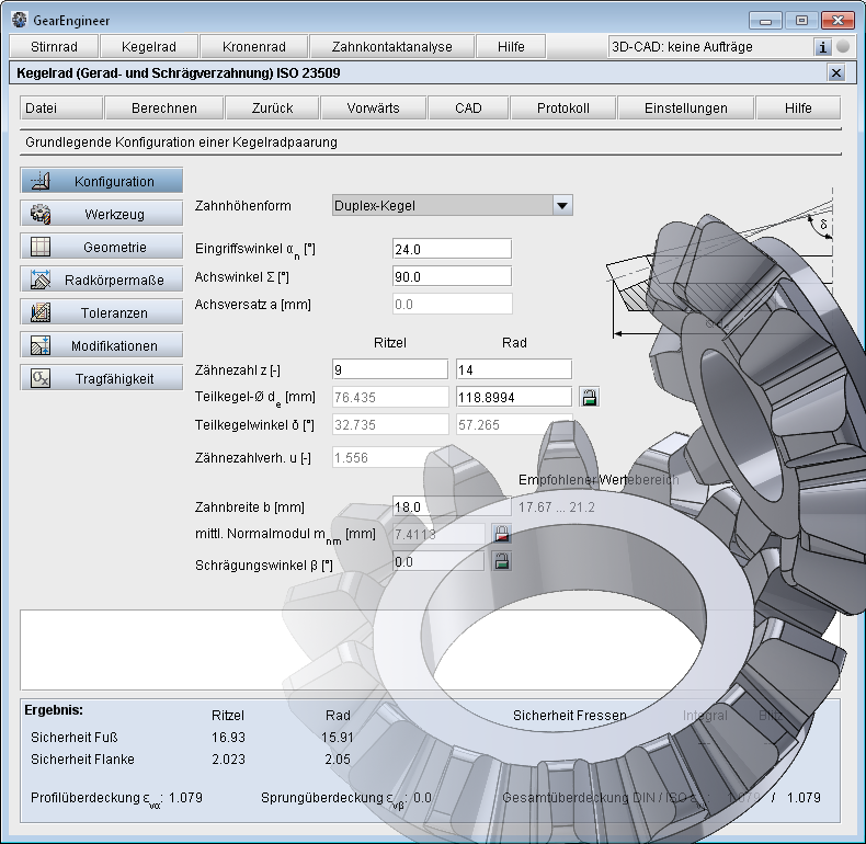 eAssistant-Berechnungsmodul für gerad- und schrägverzahnte Kegelräder