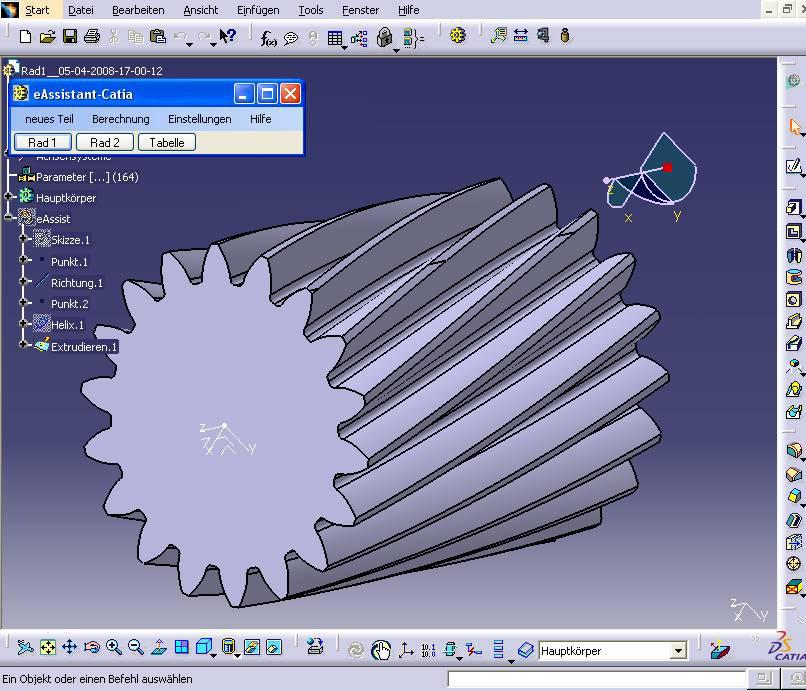 Schrägverzahntes Stirnrad mit exakter Zahnform aus Berechnung direkt in CATIA erzeugt