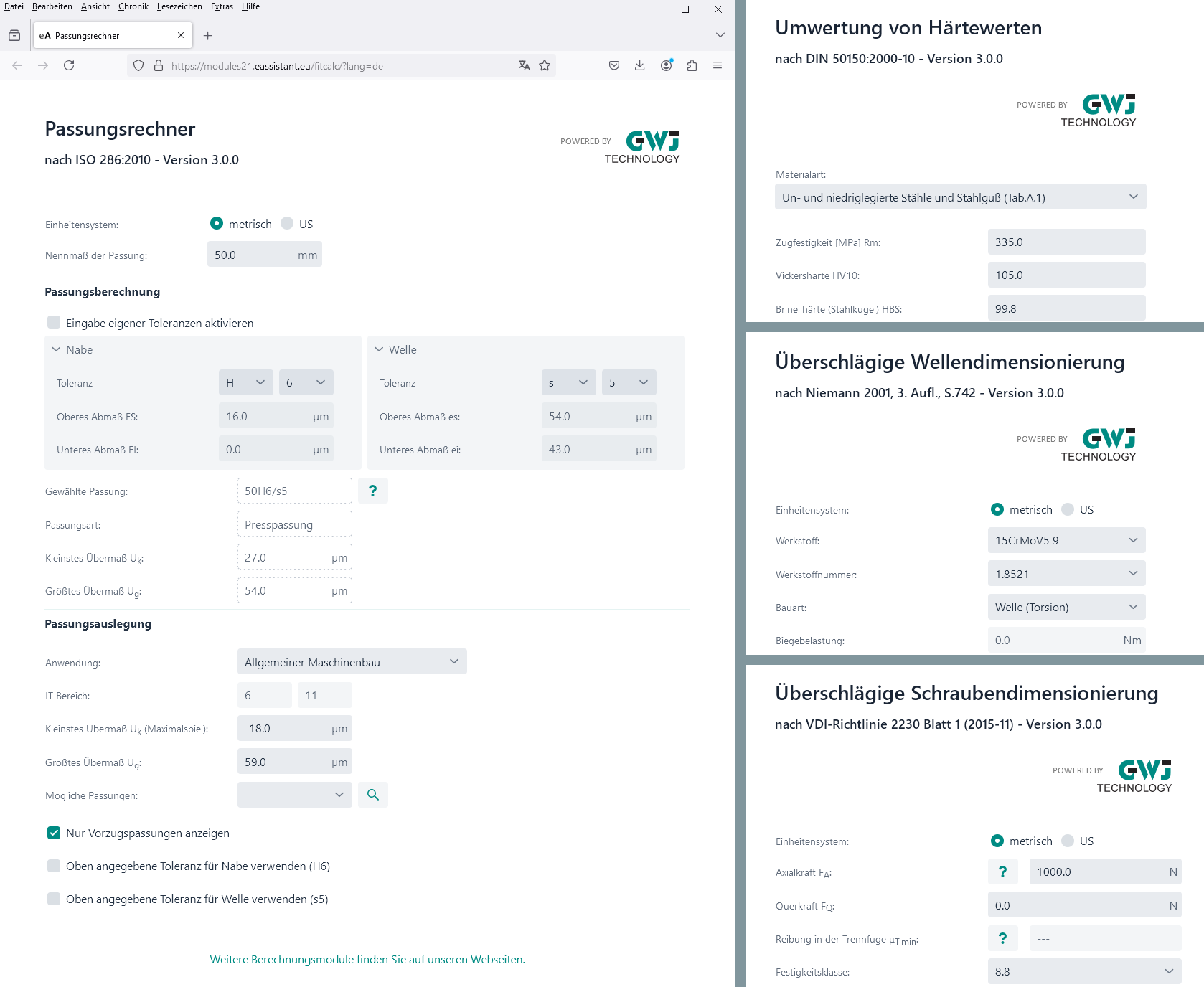 Kostenfreie eAssistant-Berechnungsmodule ohne Registrierung