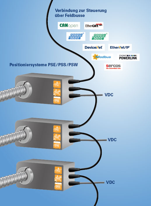 Das Positioniersystem PSE 325_3210-14 mit nur einem Anschluss zur indirekten Verkabelung