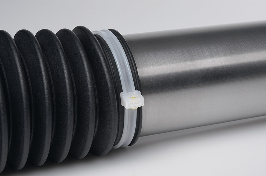 KR-Series cable ties are distinguished by their smooth strap and unique locking mechanism. They have a very high tensile strength of 785 N. Due to its special design, KR-Series cable ties can be used to safely bundle heavy cables or to secure bellows on steering racks, fluid hoses or vacuum lines. The EVO KR tool punches a glass-fibre pin in the head of the tie into the smooth strap to secure it firmly in place. This is extremely resistant to the effects of vibration over time and cannot be opened by accident.