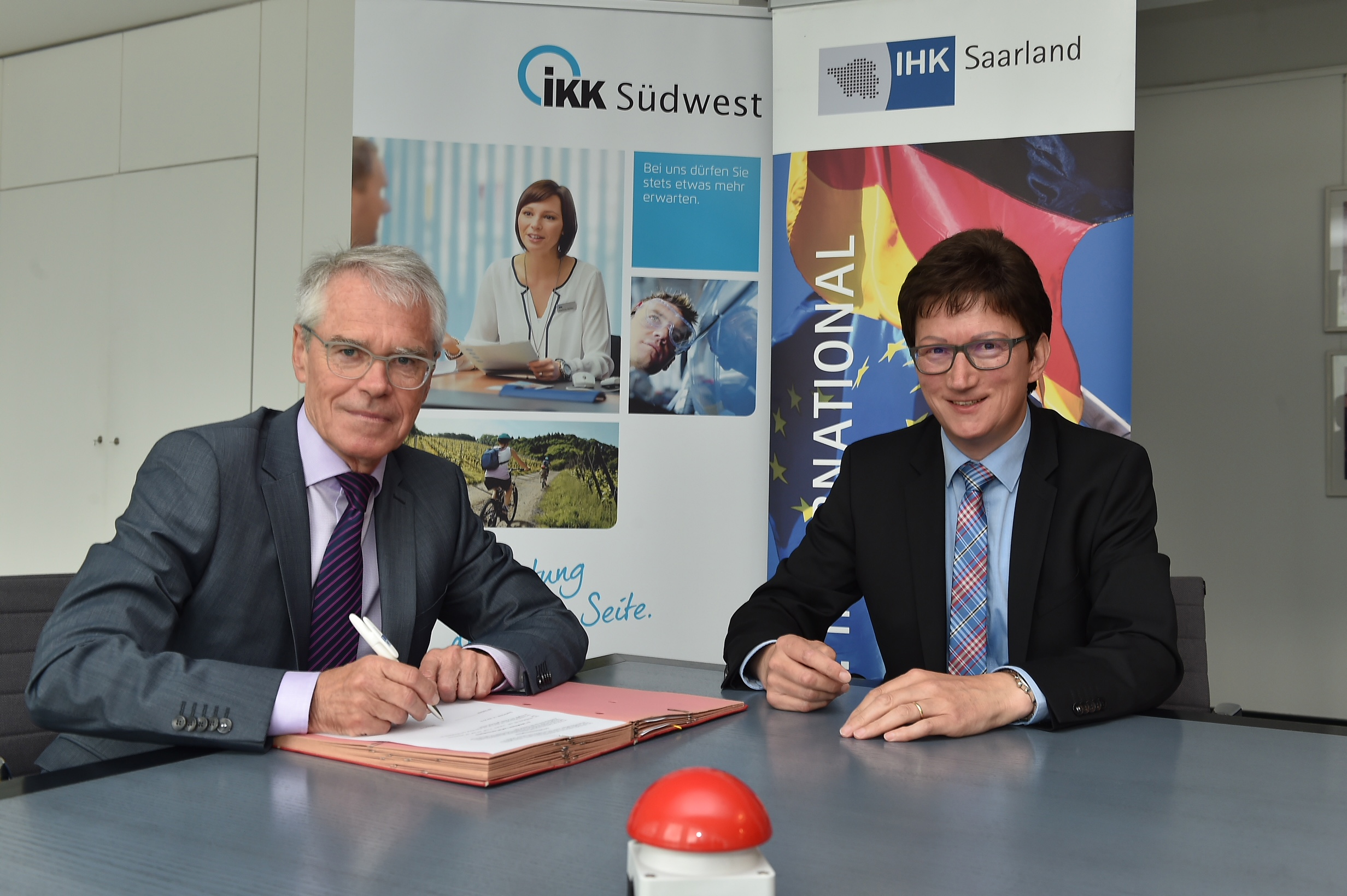 Von links: Volker Giersch, Hermann Götzinger, Albert Hettrich, Philipp Gross, Petra Krenn-Paul, Heiko Maas, Gudrun Pink, Wolfgang Herges, Annegret Kramp-Karrenbauer, Dr. Richard Weber, Jürgen Barke, Thomas Hempel, David Zimmer