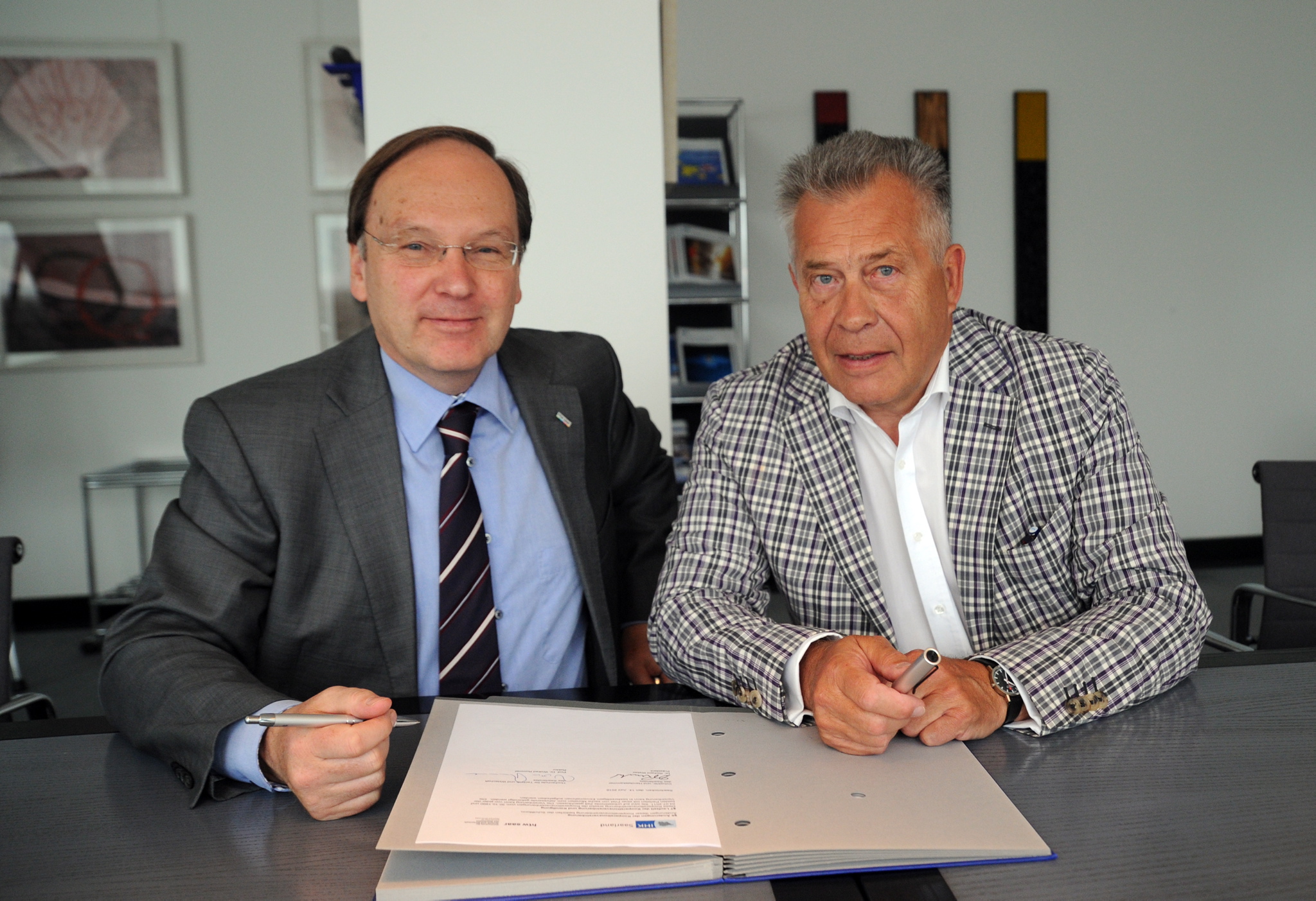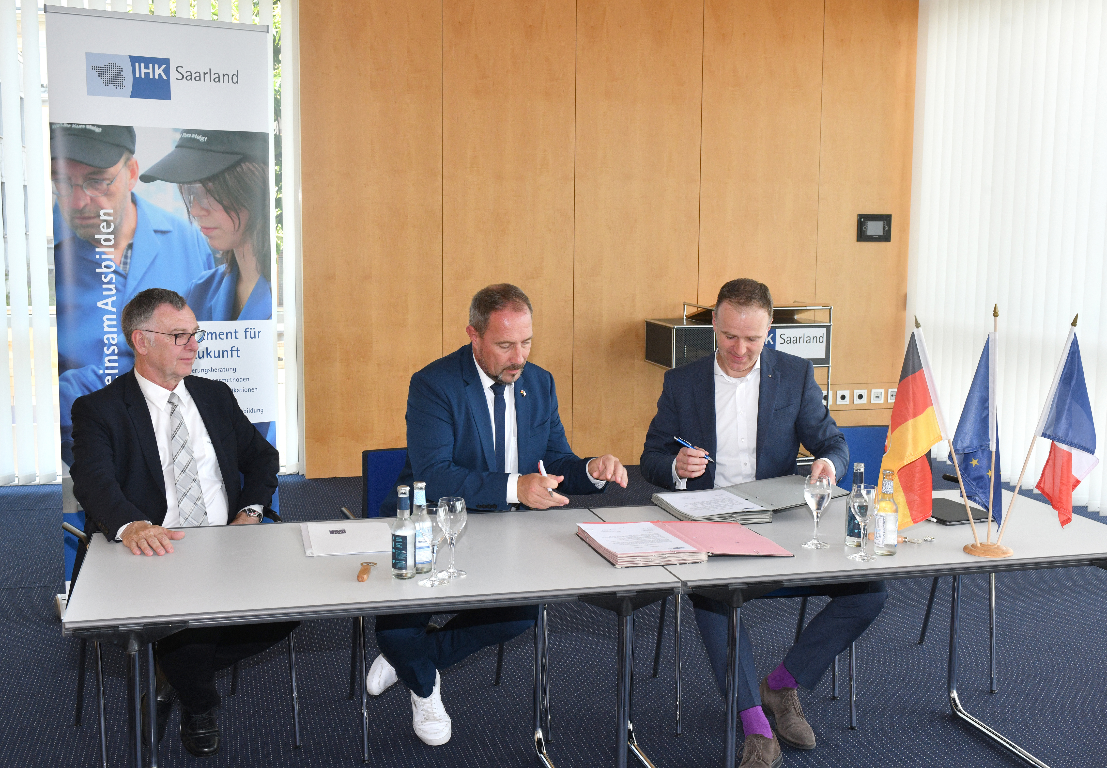 Jürgen Lenhof, Wirtschaftsministerium, Abdul Saymoa (Cham Saar), Christian Schmidt, Christian Schwindling, Alexander Westhäusler (Qbing Industrial Solutions), Matthias Riehm , Anna Riehm ( Cham Saar), Ludwig Trappe (CBM-IT), Dr. Mathias Hafner (IHK Saarland), Rolf Sotzmann (SWG)