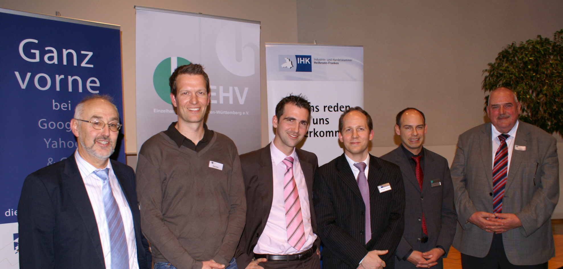 Familienfreundlichkeit gewinnt zunehmend an Bedeutung (von links): Peter Schweiker, Geschäftsführer der IHK Heilbronn-Franken, Alexandra Waltritsch, IHK-Referentin Demografiemanagement, Marc Königer, Personalleiter Trumpf Hüttinger GmbH & Co. KG, Dr. Stefanie Leenen, Geschäftsführende Gesellschafterin BASS GmbH & Co. KG sowie Martina Klärle, Klärle - Gesellschaft für Landmanagement und Umwelt mbH und Martin Zeller, Geschäftsführer BASS GmbH & Co, KG.