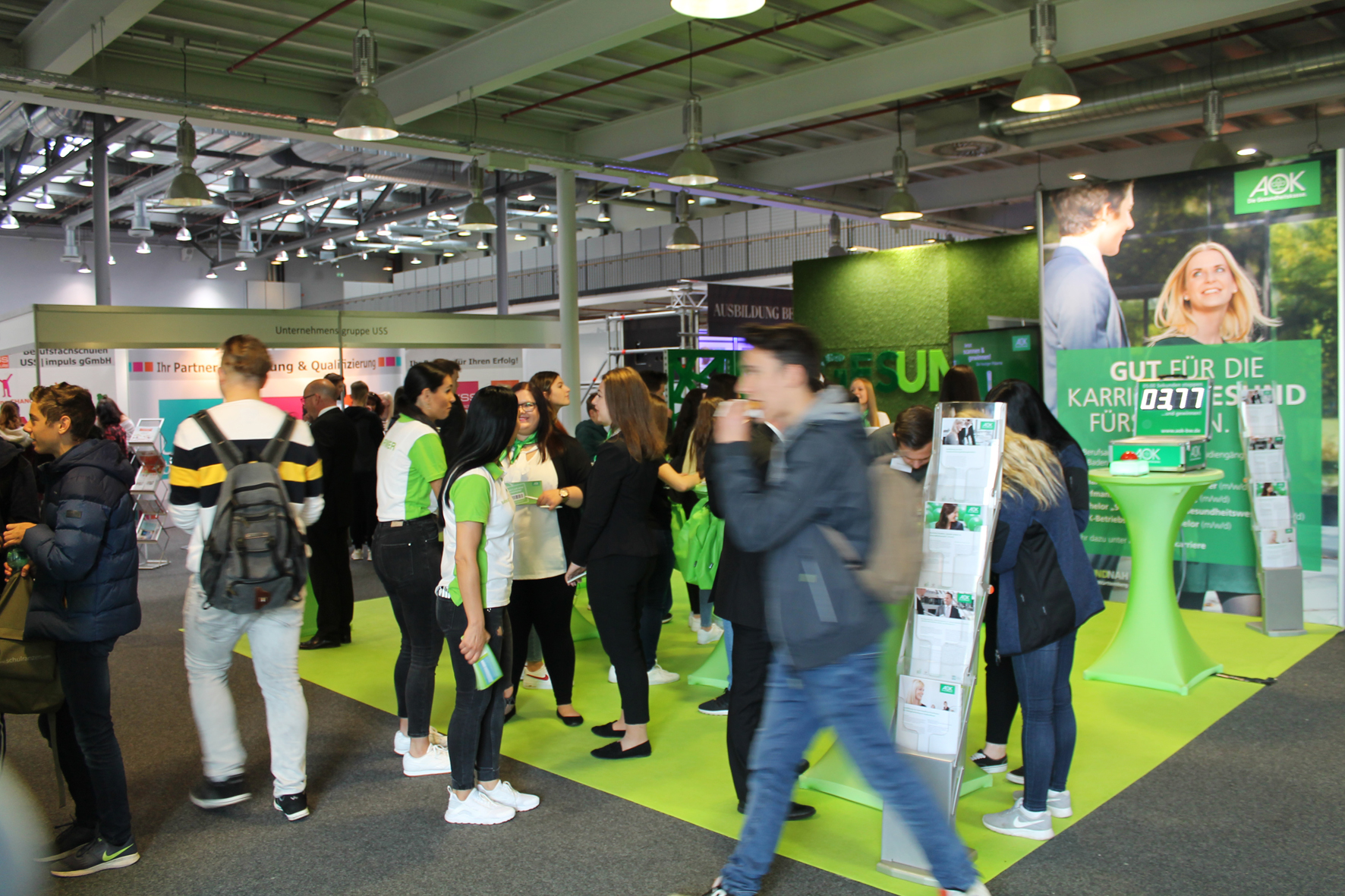 Großer Bahnhof auf der Bildungsmesse (von links): MdL Rainer Hinderer, Dietmar Niedziella, Leiter Berufsbildung IHK Heilbronn-Franken (hinten), MdB Josip Ju-ratovic, Reinhold Gall, Innenminister des Landes Baden-Württemberg, Elke Schweig, Hauptgeschäftsführerin IHK Heilbronn-Franken, Ulrich Bopp, Präsident Handwerkskammer Heilbronn-Franken und Prof. Dr. Dr. h. c. Harald Unkelbach, Präsident IHK Heilbronn-Franken beim Messerundgang / Foto: IHK