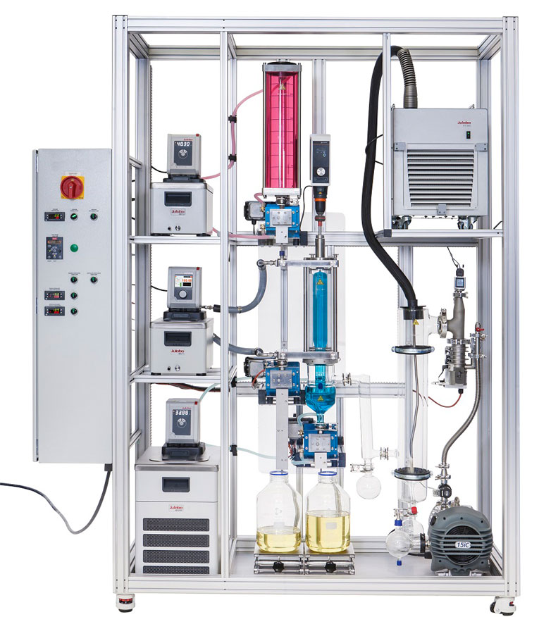 Zu Temperieranforderungen mit hohem Schmelz-/Siedepunkt wird am Beispiel einer Industrie-Anlage für Kurzweg- und Molekulardestillation gezeigt, wie der Einsatz von Bad-/Umwälzthermostate in der praktischen Anwendung aussehen kann.