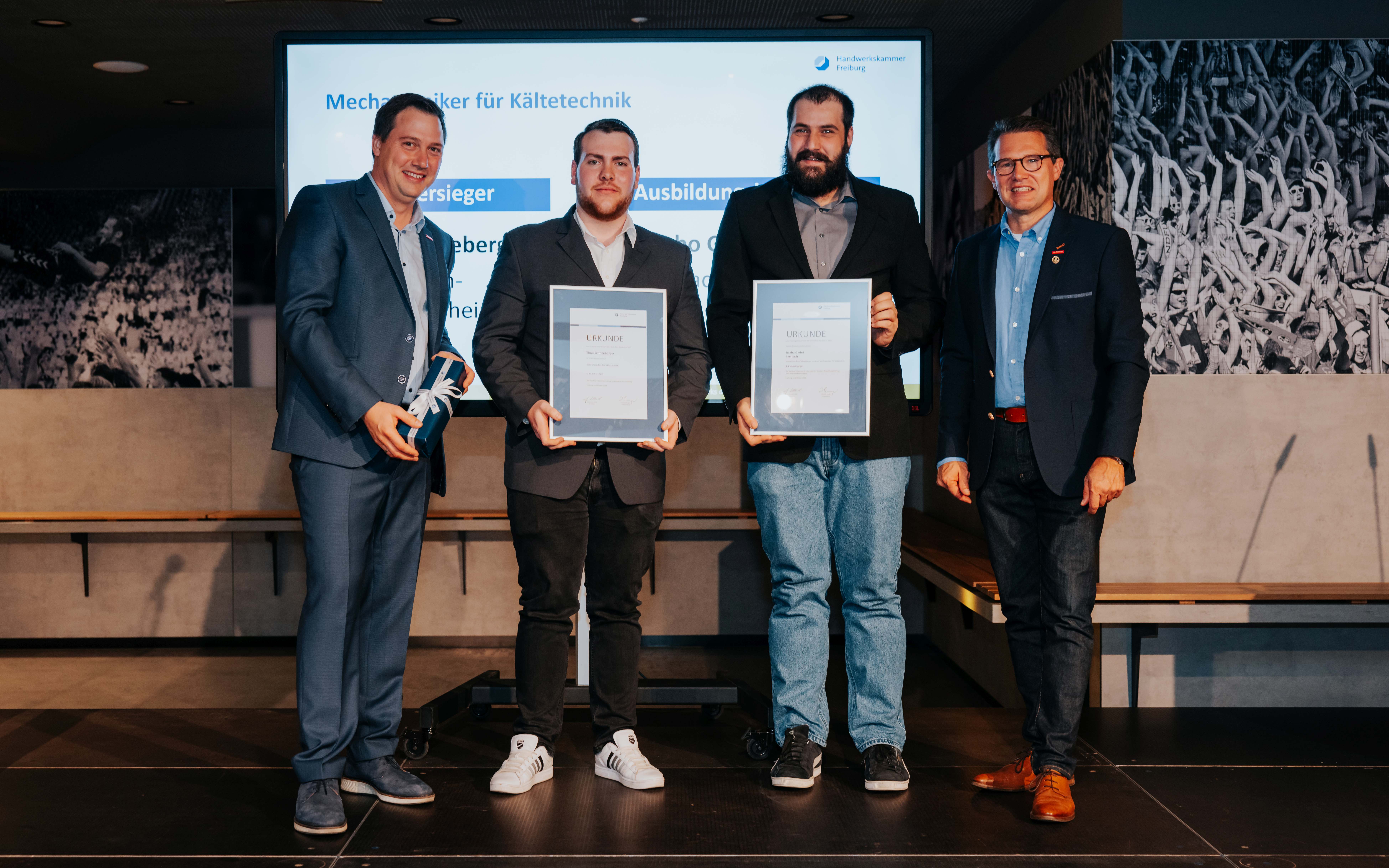 Bild: Kammersieger in Mechatroniker für Kältetechnik Timo Schneeberger und JULABO Ausbildungsleiter Michael Leppla (Mitte).