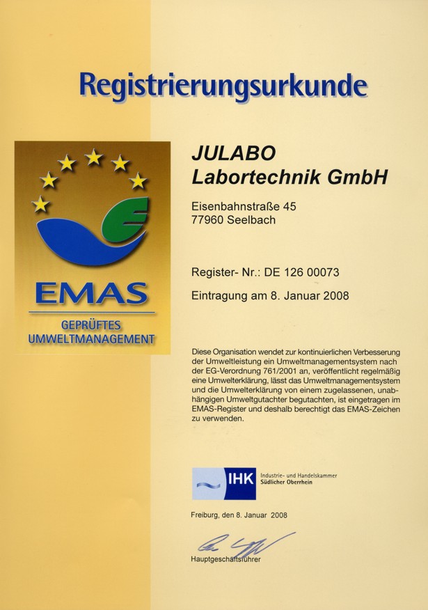 JULABO zählt im EcoVadis Nachhaltigkeitsranking im Branchenvergleich zu den besten 15% aller untersuchten Unternehmen im Bereich Corporate Social Responsibility (CSR).
