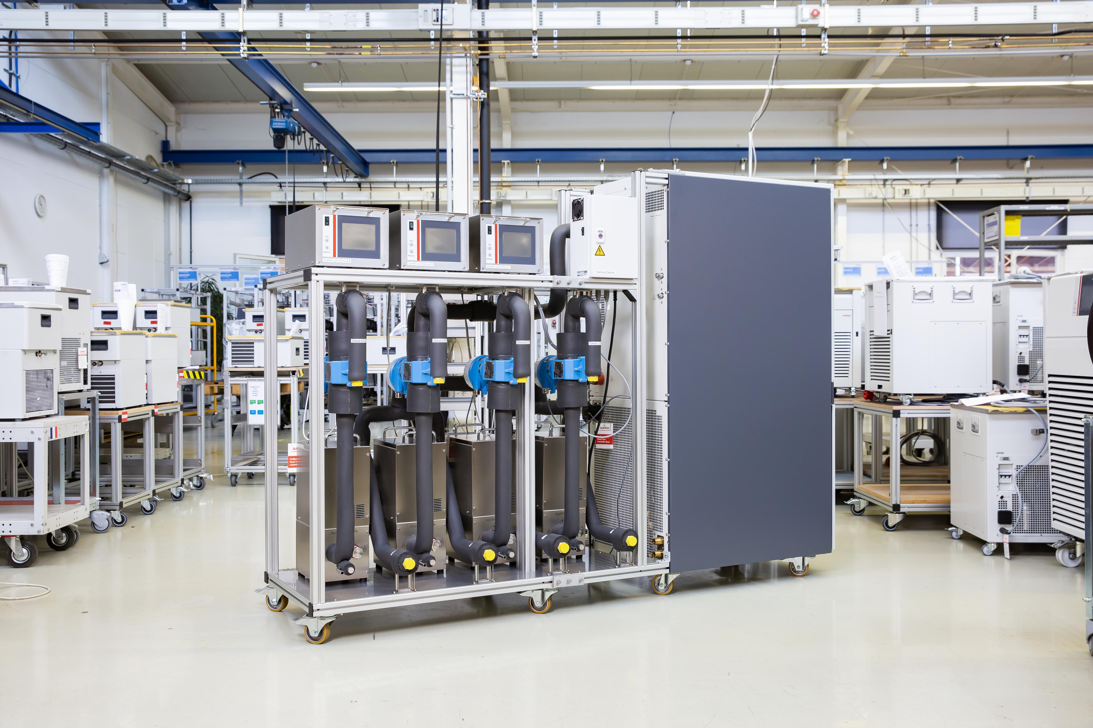 With this modular system, we can tailor existing temperature control solutions precisely to specific customer requirements. Additional functions such as flow measurement, pressure control, expansion of the heating and pump capacity or secondary circuits are standard. But (almost) anything is possible! Discover examples of what the solution for your requirement could look like.