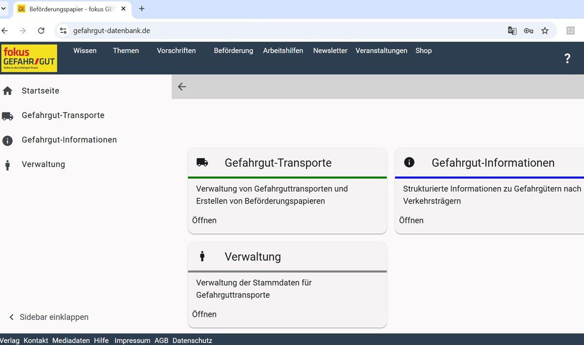 Modern und intuitiv: die neue Datenbank von fokus GEFAHRGUT für Gefahrgutinformationen und Beförderungspapiere. (©Foto: TECVIA Media GmbH)