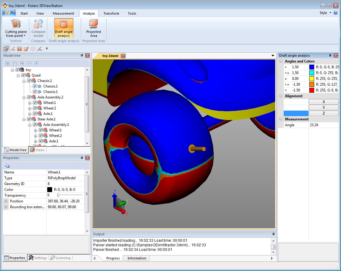 Entformungsschrägenanalyse und automatische Baugruppenexplosion: KISTERS 3DViewStation V12.03