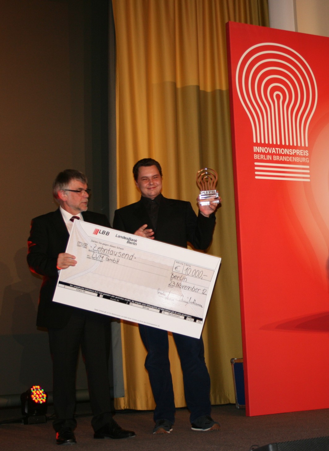 Die Preisträger Prof. Dr. Dietmar Lerche (links) und Uwe Rietz (beide LUM GmbH) bei der Innovationspreisverleihung am 23.11.2012 in Berlin