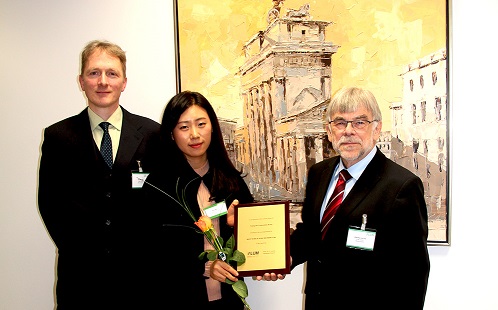 Ms. May Kim (Young Jin Corporation, Korea, Preisträger 2018), Dr. Arnold Uhl (Sales & Marketing Manager LUM GmbH, links), Prof. Dr. Dr. Dietmar Lerche (Geschäftsführer LUM GmbH)