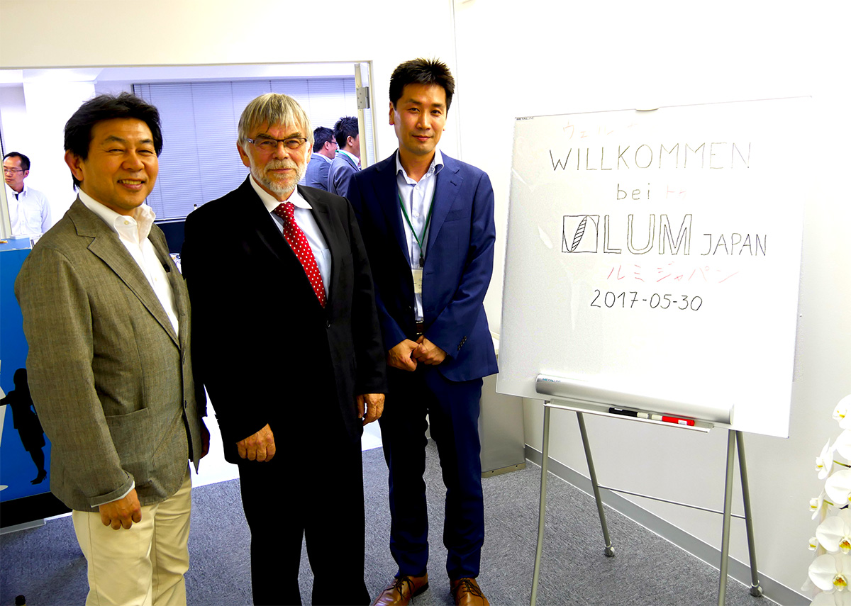von links nach rechts: LUM Japan mit Gründern und Managern: Dr. Takeda (GM LUM Japan), Prof. Dr. Lerche (MD LUM GmbH), Mr. Miyajima (COO LUM Japan)