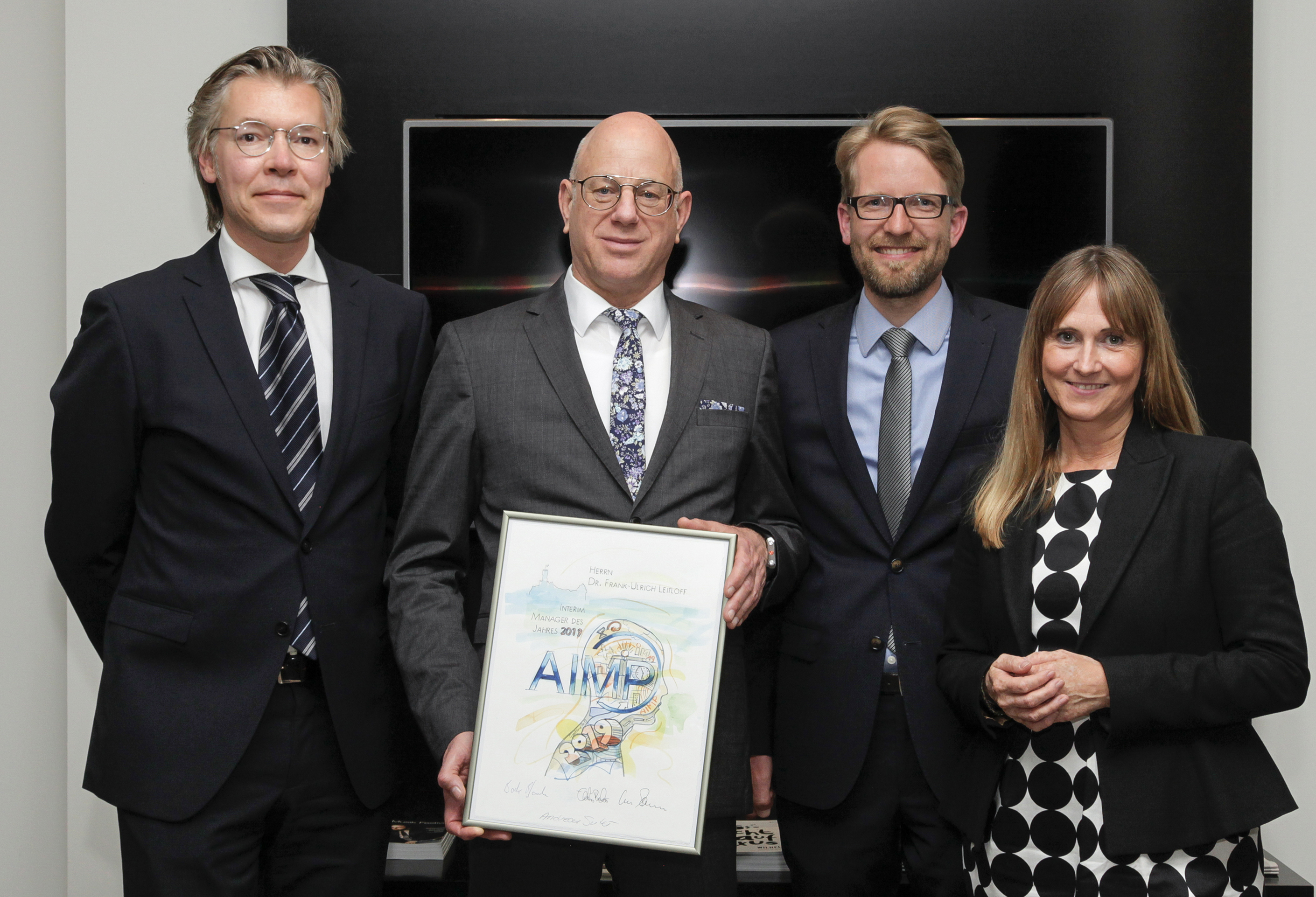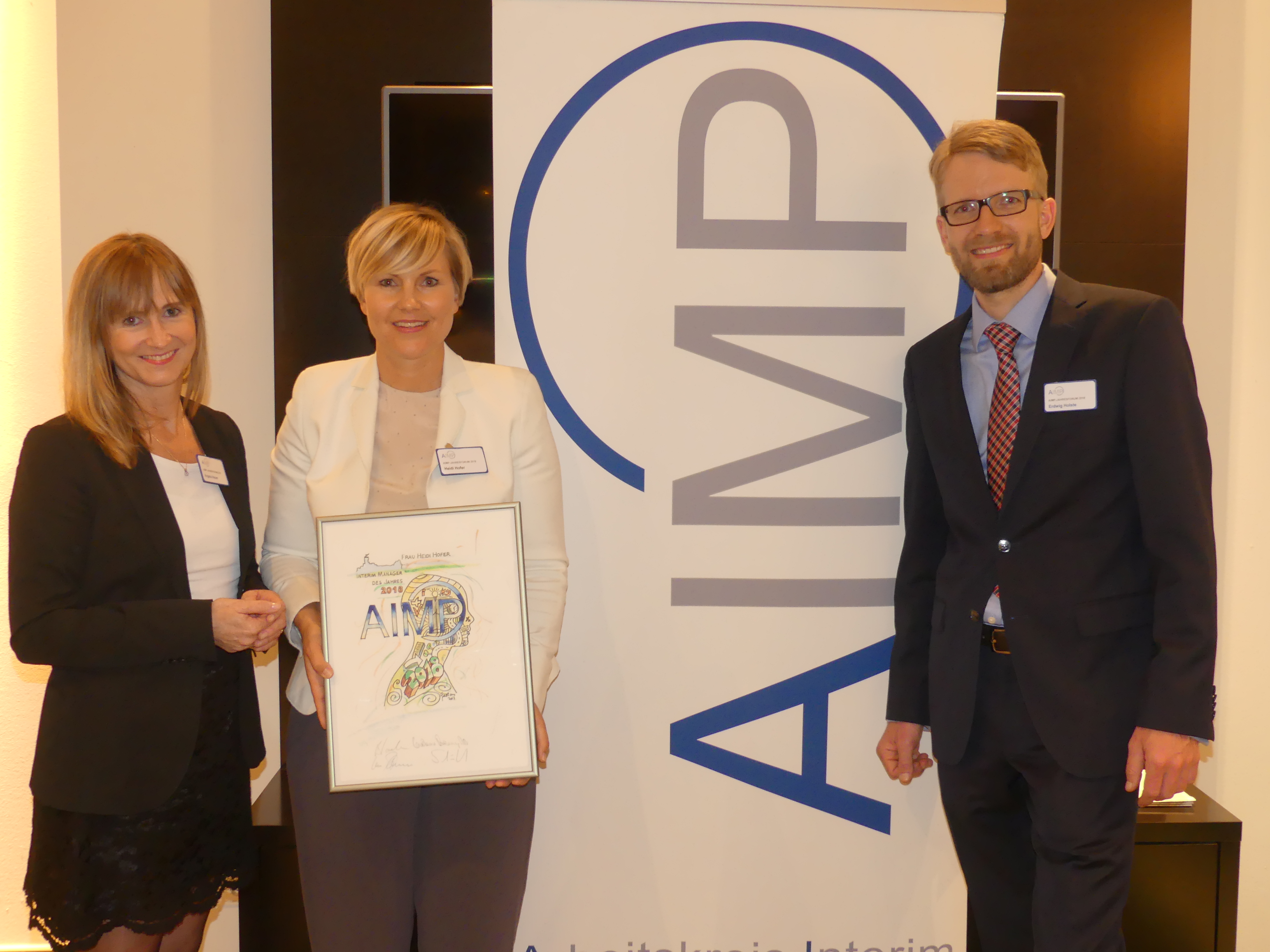 Management Angels Inhaber Thorsten Becker mit Preisträgerin Katrin Grunert-Jäger und Vorjahrespreisträger Eckhart Hilgenstock
