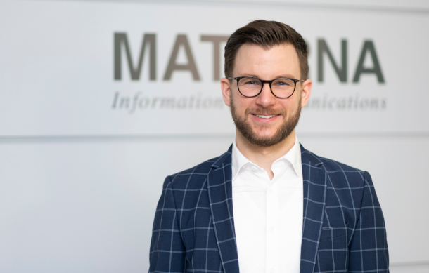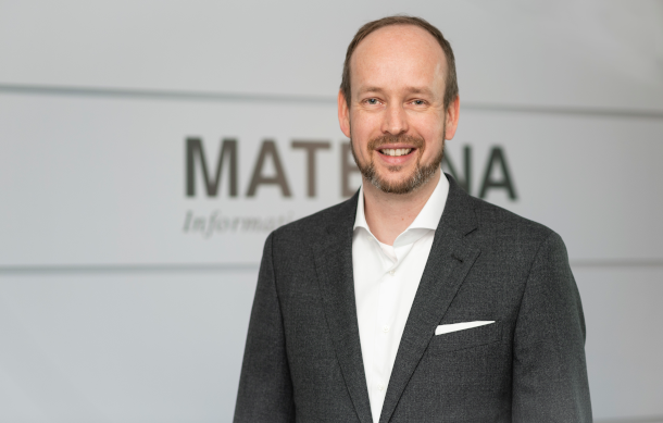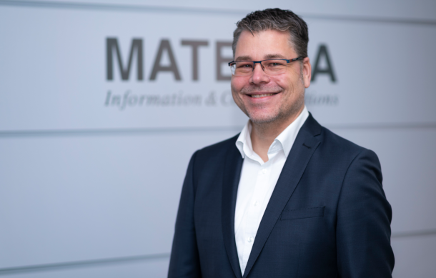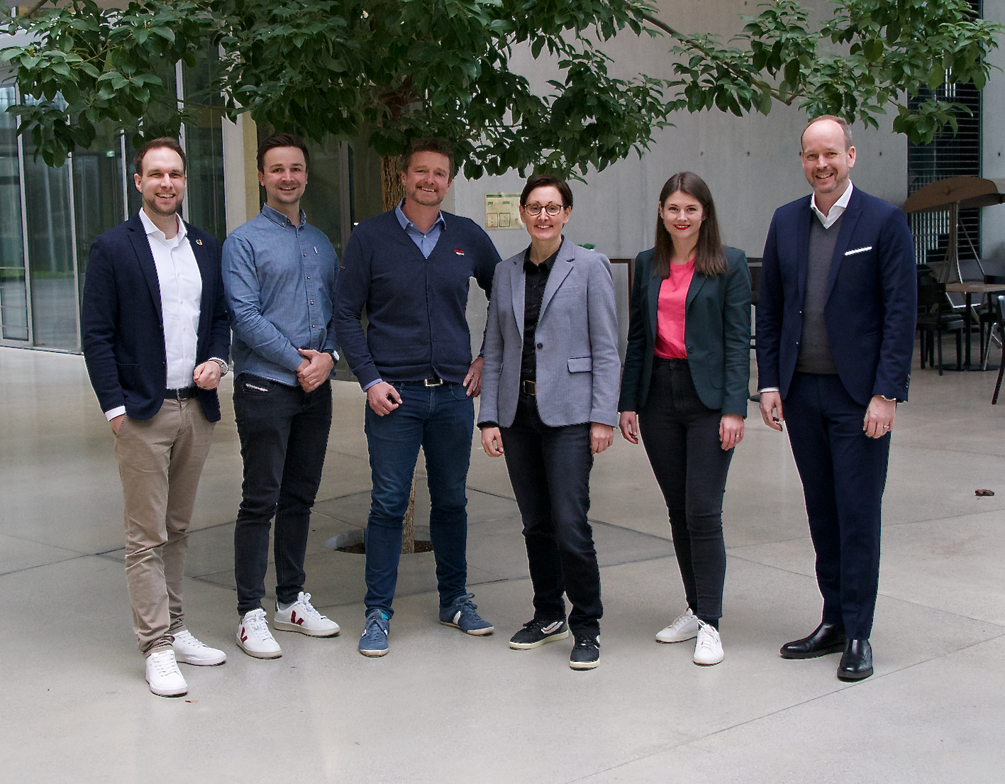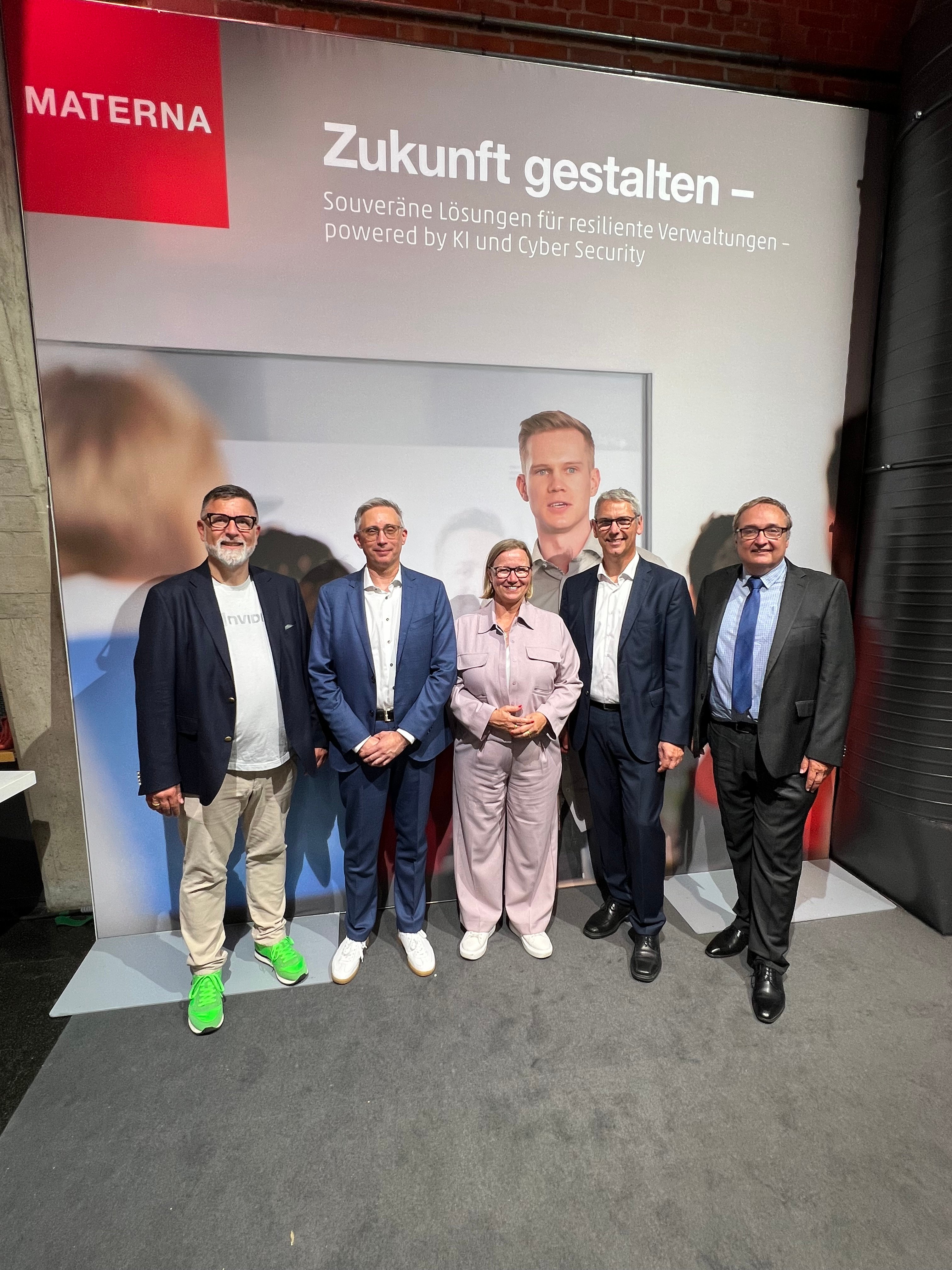 Wegbereiter der Partnerschaft: (v.l.): Andreas Maslo (Co-Founder und CEO, VERSO), Matthis Berghoff (Digital Strategy Consultant, Materna), Alexander Penitsch (COO, VERSO), Dinah Erdmann (Vice President Digital Strategy Consulting, Materna), Nuvia Maslo (CCO, VERSO), Martin Wibbe (CEO, Materna). Nicht auf dem Bild: Florian Holl (Co-Founder und CEO, VERSO)