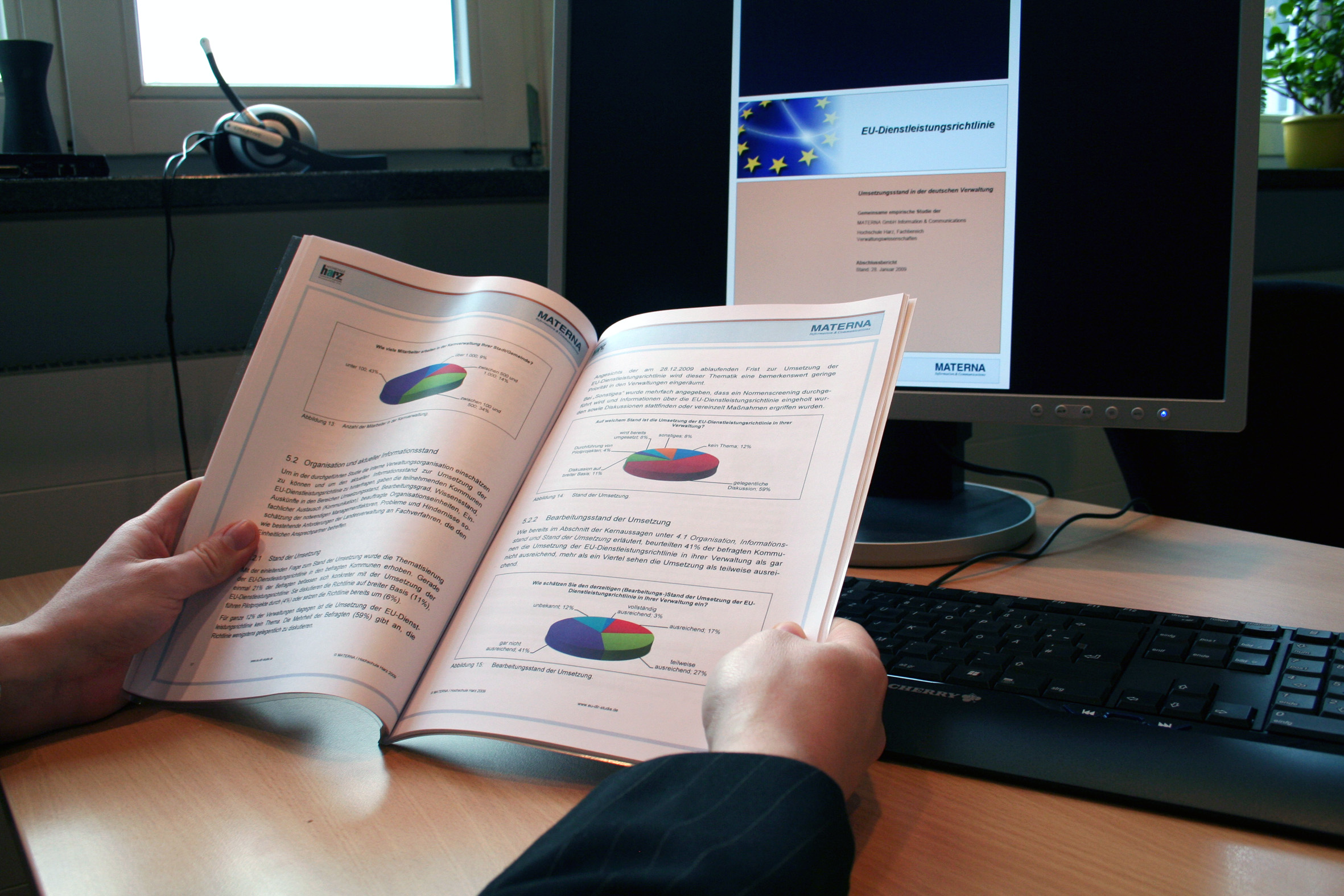 v.l.n.r.: Lieselotte Neste (Senior Vice President Technology, Materna IPS GmbH), Pia Becker (Teamleitung Facility Management, Materna SE), Dr. René Rüdinger (Chief Financial Officer und Vorstandsmitglied der Materna-Gruppe), Norbert Witte (Qualitäts- und Umweltbeauftragter, Materna SE), Markus Lützner, Vertriebsauditor und Leiter Fachvertrieb Rhein-Ruhr-Ems des TÜV NORD CERT GmbH, Anne Goldstein (Assistenz Facility Management, Materna SE), Jennifer Schade (Marketing Communications Manager, Mater