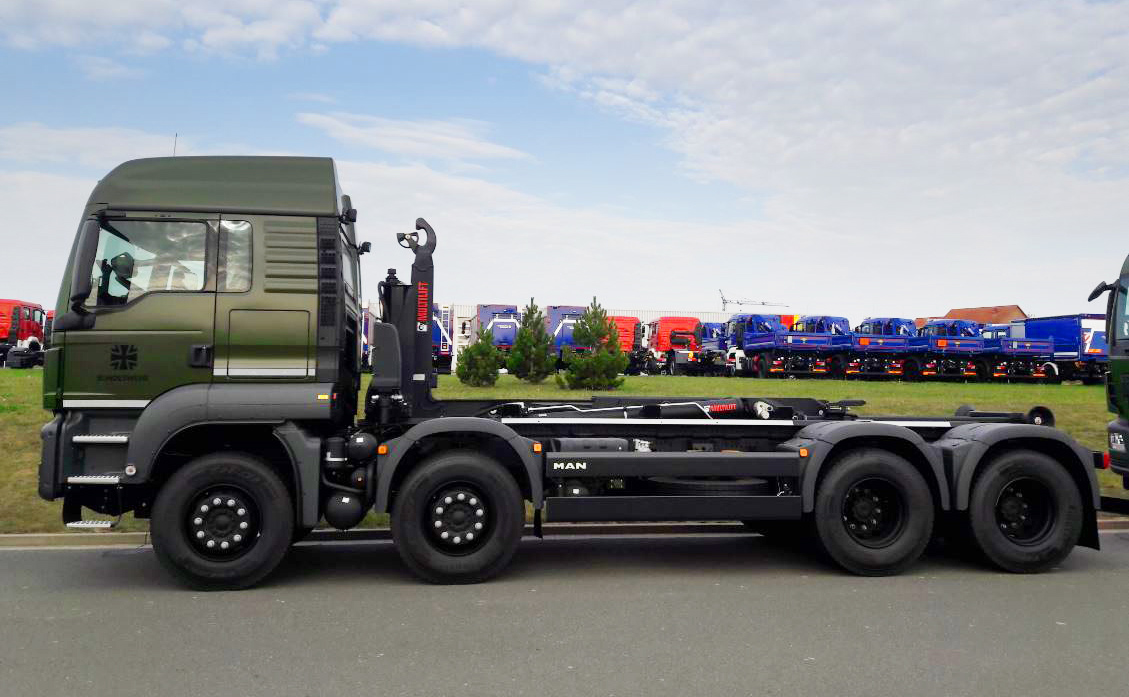 (pressebox) (Düsseldorf, 2020-11-19) Rheinmetall has begun serial delivery of 342 roll-off tipper vehicles to BwFuhrparkService GmbH (BwFPS), the state-owned enterprise in charge of the Bundeswehr’s fleet of non-tactical vehicles. The first 69 logistic vehicles were transferred, to be followed by up to eight more trucks per week. By supplying these hook lift-equipped TGS 8x4 trucks, Rheinmetall is making another important contribution to bolstering the Bundeswehr’s operational readiness. The order, issued at the end of 2019, is worth a figure in the two-digit euro million range, making it the largest single order for commercial (“white fleet”) trucks in company history. Delivery is expected to be complete by the middle of next year. Rheinmetall and its truck specialist Rheinmetall MAN Military Vehicles (RMMV) have thus emerged as major suppliers of commercial trucks to the Bundeswehr, augmenting the Group’s long-established role as a source of state-of-the-art combat vehicles.