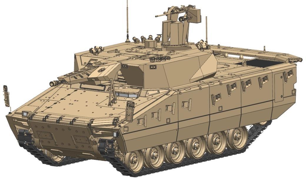 The StrikeShield APS will be mechanically integrated into hybrid armour tiles on the Lynx. Instead of conventional passive add-on armour modules, the platform will feature spaced passive armour tiles that incorporate the components of the APS between an outer ply and inner tiles mounted on the vehicle’s hull.