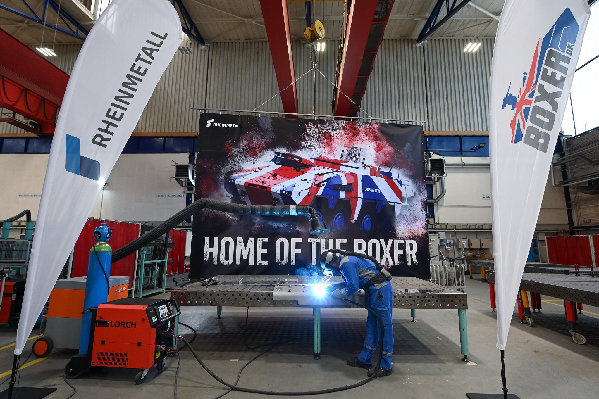 Britain’s Boxer programme is on a roll: exactly according to plan, welding work began today for the fabrication of prototypes and subsequent series production of the Mechanized Infantry Vehicle (MIV). Under the aegis of Artec GmbH, a joint venture of Rheinmetall and Krauss-Maffei Wegmann (KMW), this vital British wheeled armoured vehicle project is thus entering a decisive phase. Development of the four British configurations of the tried-and-tested 8x8 fighting vehicle began at the end of 2019. First milestones were already achieved in autumn 2020. As to the modular design of the Boxer vehicle the MIV Programme made use of already qualified solutions and design where ever possible. Therefore production of the first parts can be started already now.