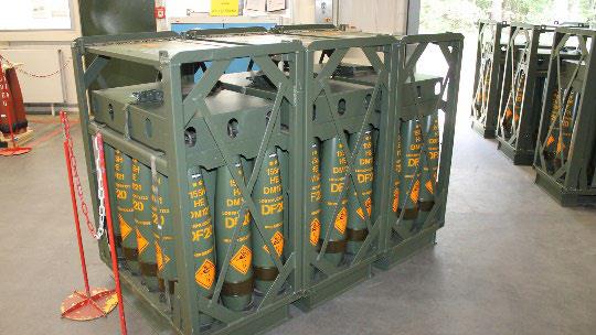 Featuring insensitive characteristics, the DM121 high-explosive shell is used for training and exercise purposes.