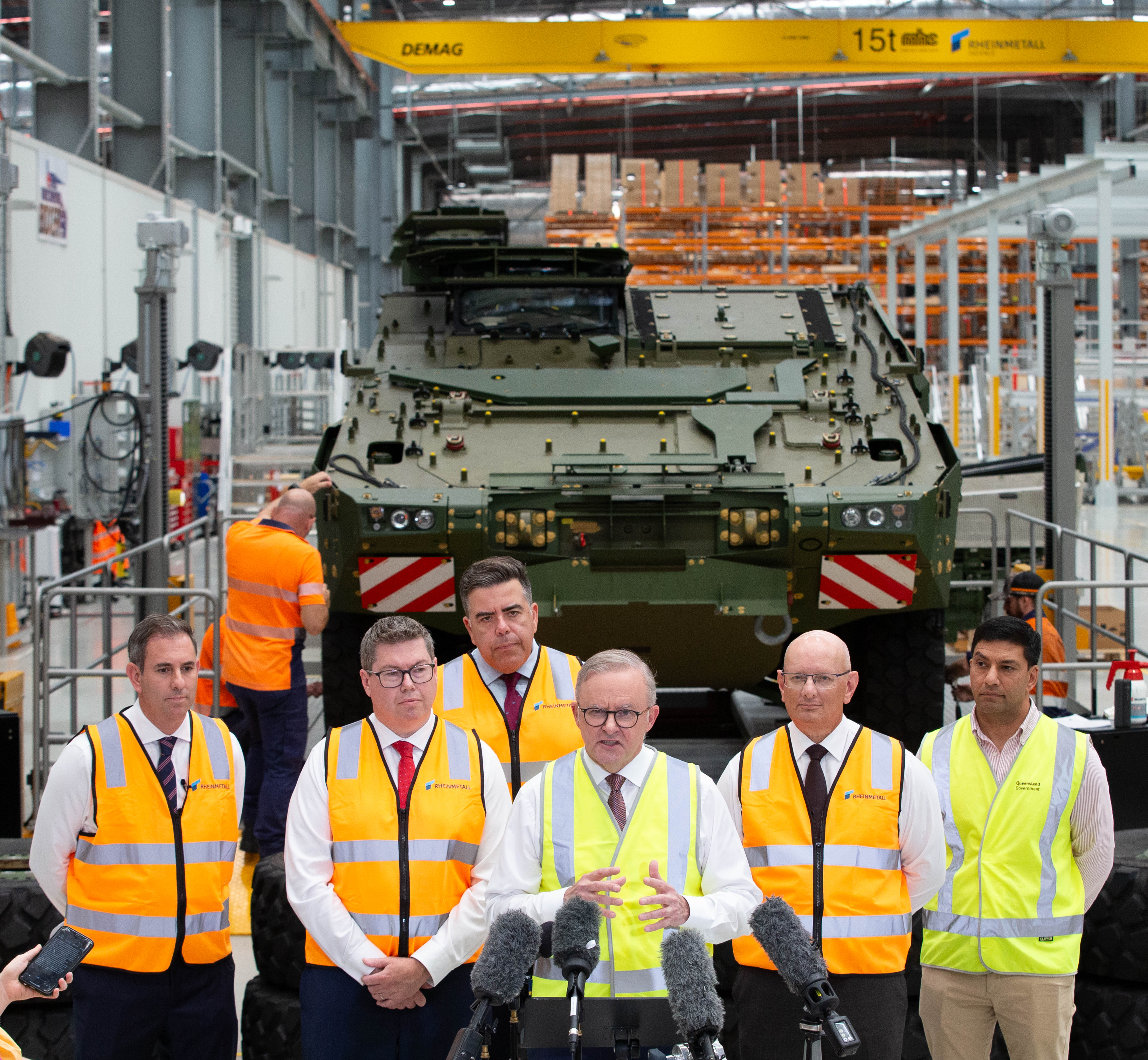 Mr Albanese visited Rheinmetall’s 11 hectare facility at Redbank in South-East Queensland that emcompasses key production line, armour producing, welding and test track facilities.
