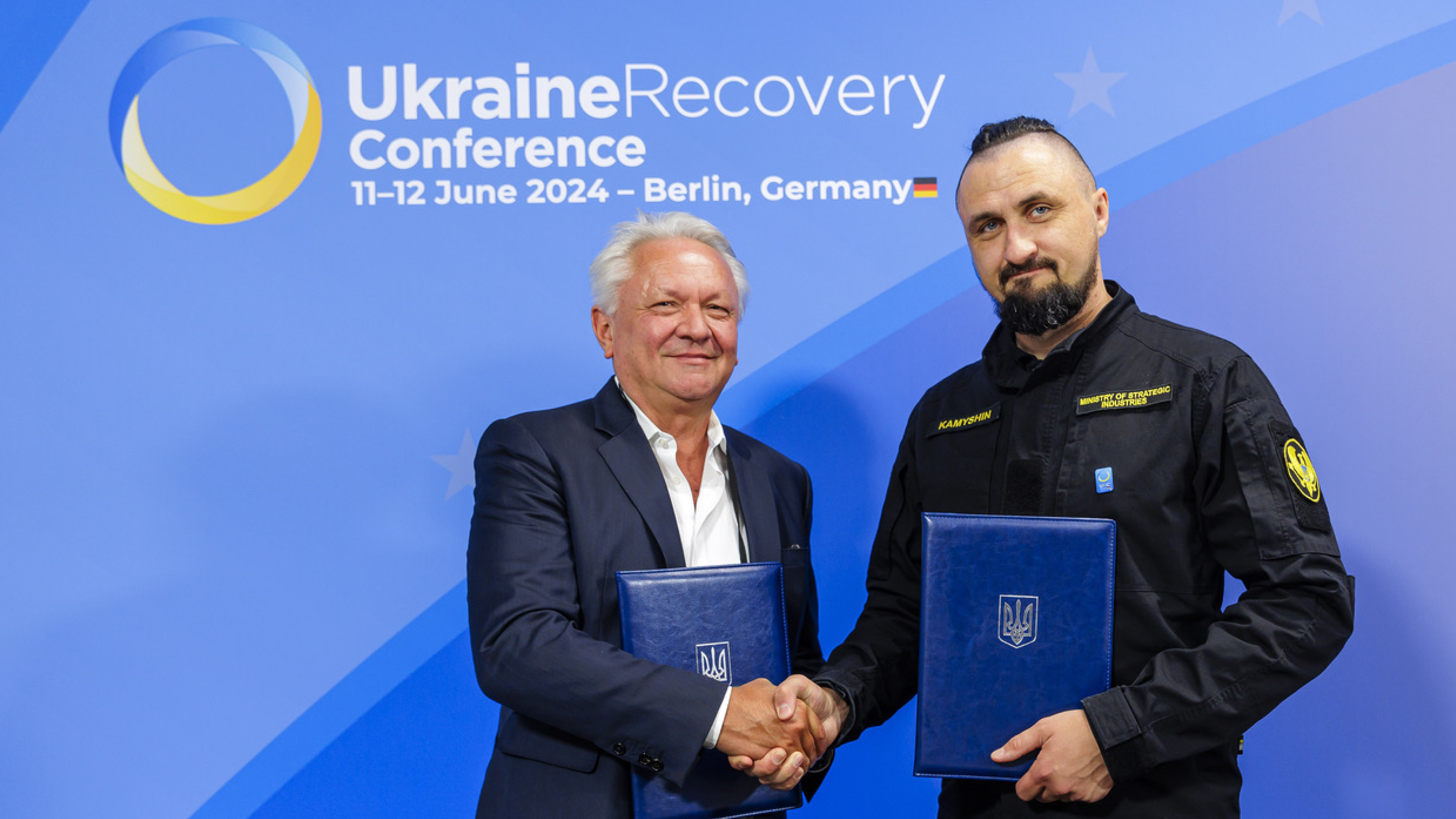 (pressebox) (Düsseldorf, Germany, 2024-06-12) Rheinmetall AG and Ukraine, represented by the Minister of Strategic Industries, Oleksandr Kamyshin, signed a Memorandum of Understanding to expand their strategic cooperation during the “Ukraine Recovery Conference” in Berlin. The agreement aims to identify and develop further areas for closer cooperation between the Ukrainian defense industry and the Düsseldorf-based technology group.