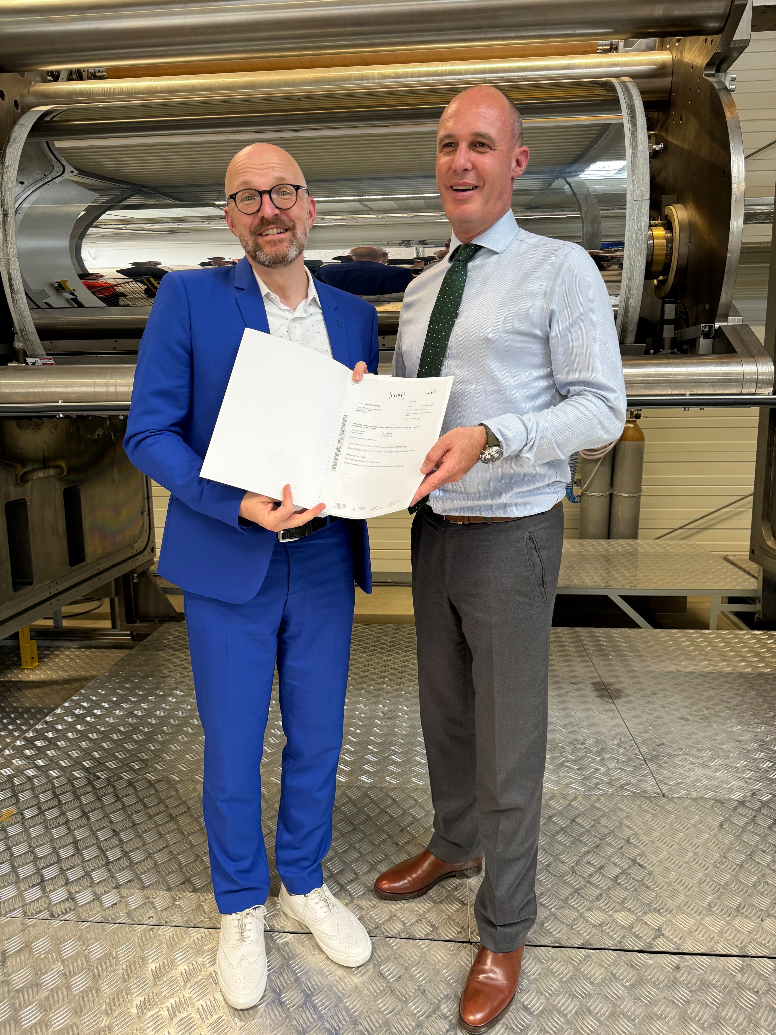 (pressebox) (Düsseldorf, 2024-07-11) Saxony's State Secretary Thomas Kralinski visited the production facility of Rheinmetall subsidiary Pierburg Pump Technology Ltd at its site in Hartha (Mittelsachsen district). Rheinmetall is planning to invest around €31m in this site to ensure production in the industrial sector even in times of transformation in the automotive industry towards modern, sustainable drive forms and “beyond automotive”. On the occasion of the visit, the State Secretary presented the company representatives with a funding notification totalling €7.66m. The funds are from the federal-state programme Joint Task for the Improvement of Regional Economic Structures (ger. Gemeinschaftsaufgabe Verbesserung der regionalen Wirtschaftsstruktur GRW).