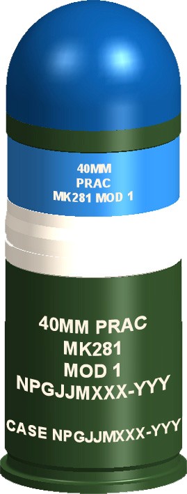 The MK281 is a non-dud producing, non-toxic training cartridge that is fired from U.S. MK19 MOD 3 weapons. The MK281 replaced the pyrotechnic, dud producing M918 training cartridge. Rheinmetall's MK281 leverages the company's patented high-visibility non-toxic "day and night" marking technology. This MK281 design reduces customers costs by eliminating unexploded ordnance, precluding range fires and affording the military commanders with better utilization of training ranges. The cartridge also affords users the ability to conduct "fire and maneuver" training in a dud-free training area.