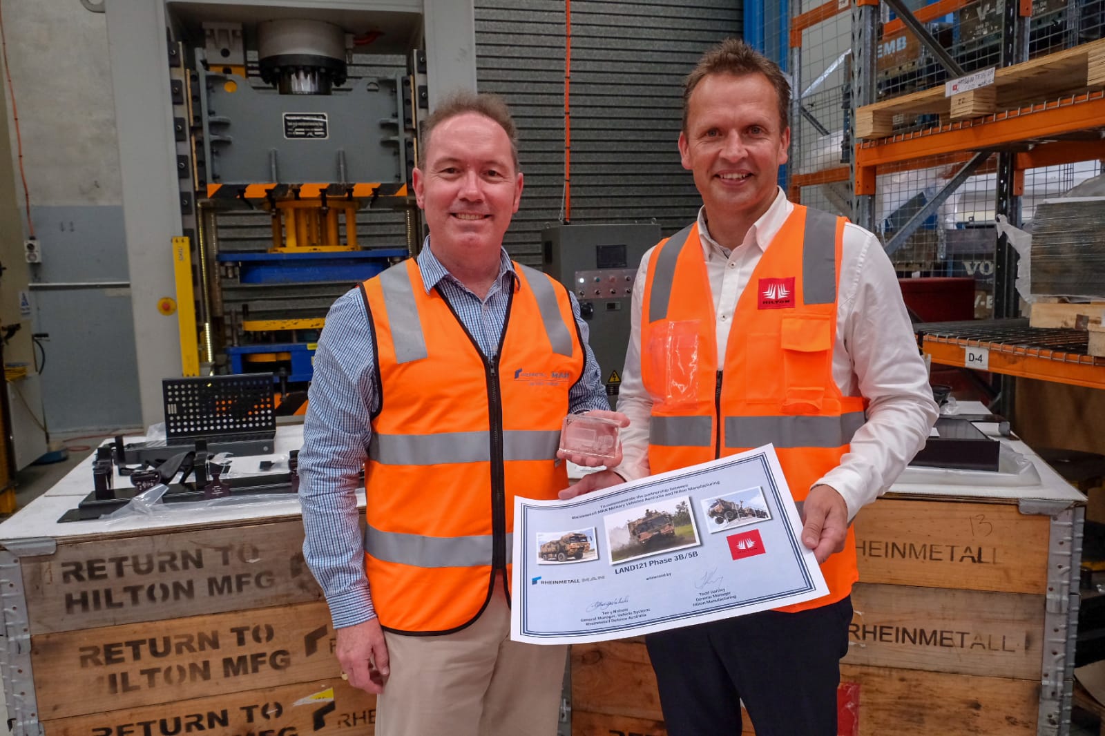 (pressebox) (Düsseldorf, 2019-03-14) Rheinmetall MAN Military Vehicles Australia (RMMVA) today confirmed the Queensland operations of Victorian steel fabricator Hilton Manufacturing has been selected to supply critical parts for the Rheinmetall MAN range of high mobility logistics trucks as part of the Commonwealth of Australia’s Land 121 Phase 3B/5B program.