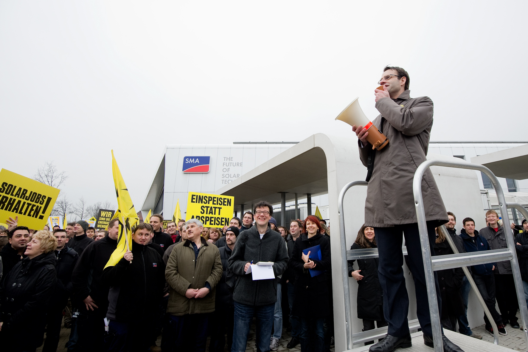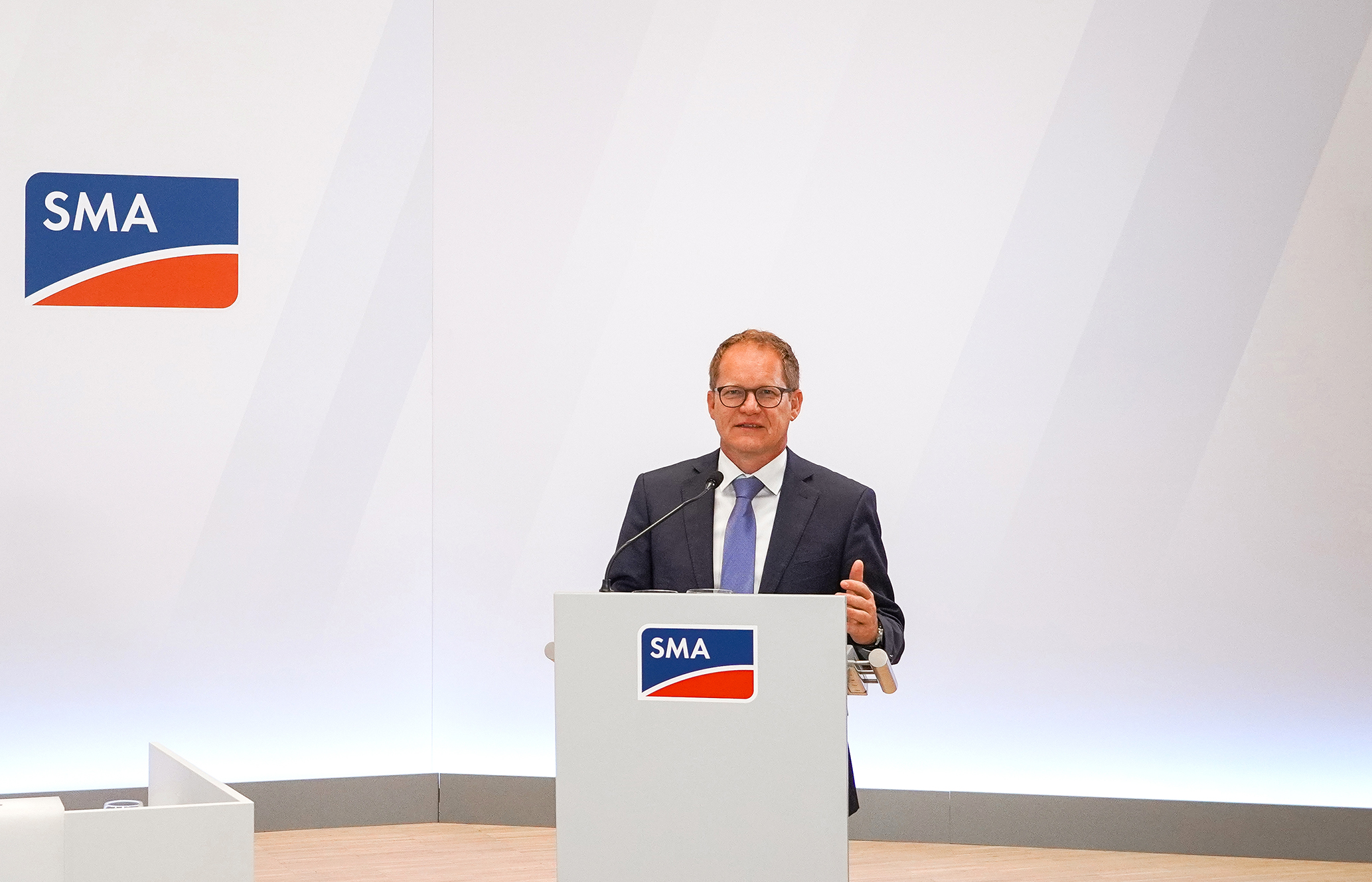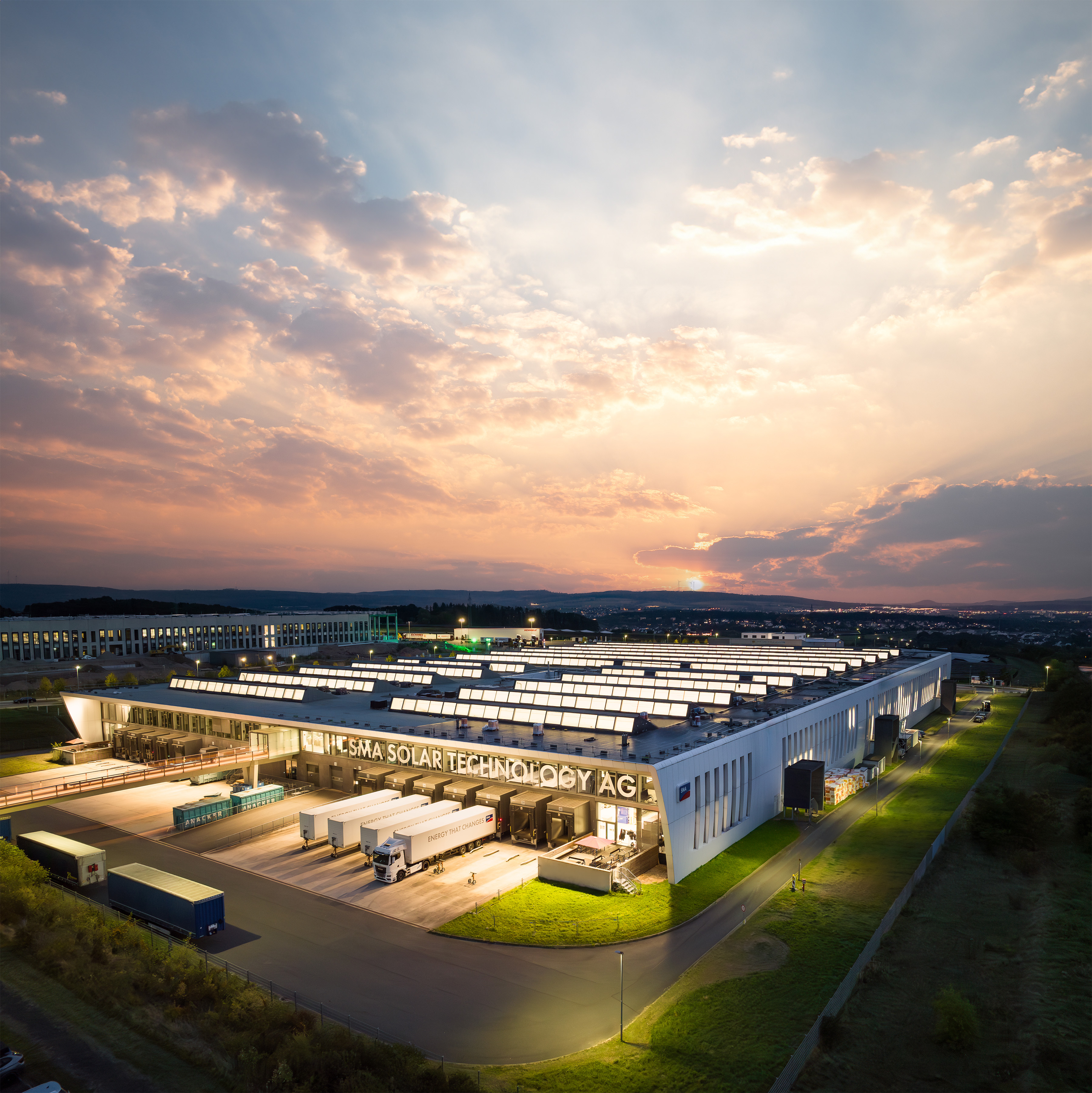 Spatenstich für die SMA GIGAWATT FACTORY: Andreas Siebert, Landrat des Landkreises Kassel (von links), Timon Gremmels, Mitglied des Bundestags, Mark Weinmeister, Regierungspräsident des Regierungsbezirks Kassel, Barbara Gregor, SMA Finanzvorständin, Jürgen Reinert, SMA Vorstandssprecher, Fred-Martin Dillenberger, Leiter Corporate Real Estate Management SMA, Marcel Brückmann, Bürgermeister Gemeinde Niestetal.