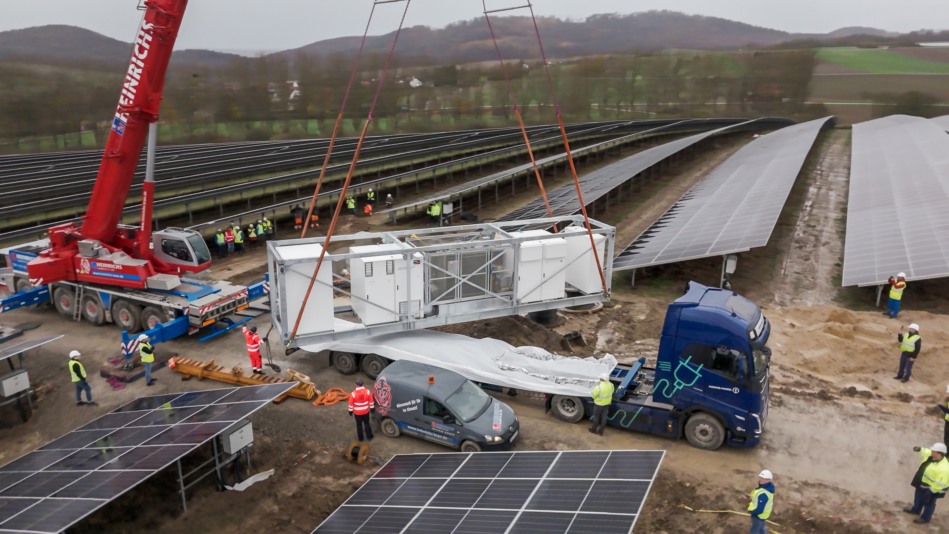 Sunny Central FLEX has now been delivered and installed for the first time for commercial operation. The “Hydrogen-Valley Wolfhagen” in Northern Hesse integrates a solar farm with approximately 97 megawatts (MWp) and two nearby wind farms with a total capacity of 72 megawatts at a substation. With the commissioning in early 2025, the electricity generated will initially be used to power the adjacent industrial park and operate charging stations for electric vehicles on the nearby highway. In the second stage, large battery storage systems will be added to store energy for use at night, for example. The batteries will be connected to the inverters, which are already prepared for DC connection. In a later stage of the project, green hydrogen will be produced on demand. For the project, BLG Project GmbH is relying on German-made quality for solar power generation with 20 Medium Voltage Power Stations from SMA, along with the new Sunny Central FLEX.