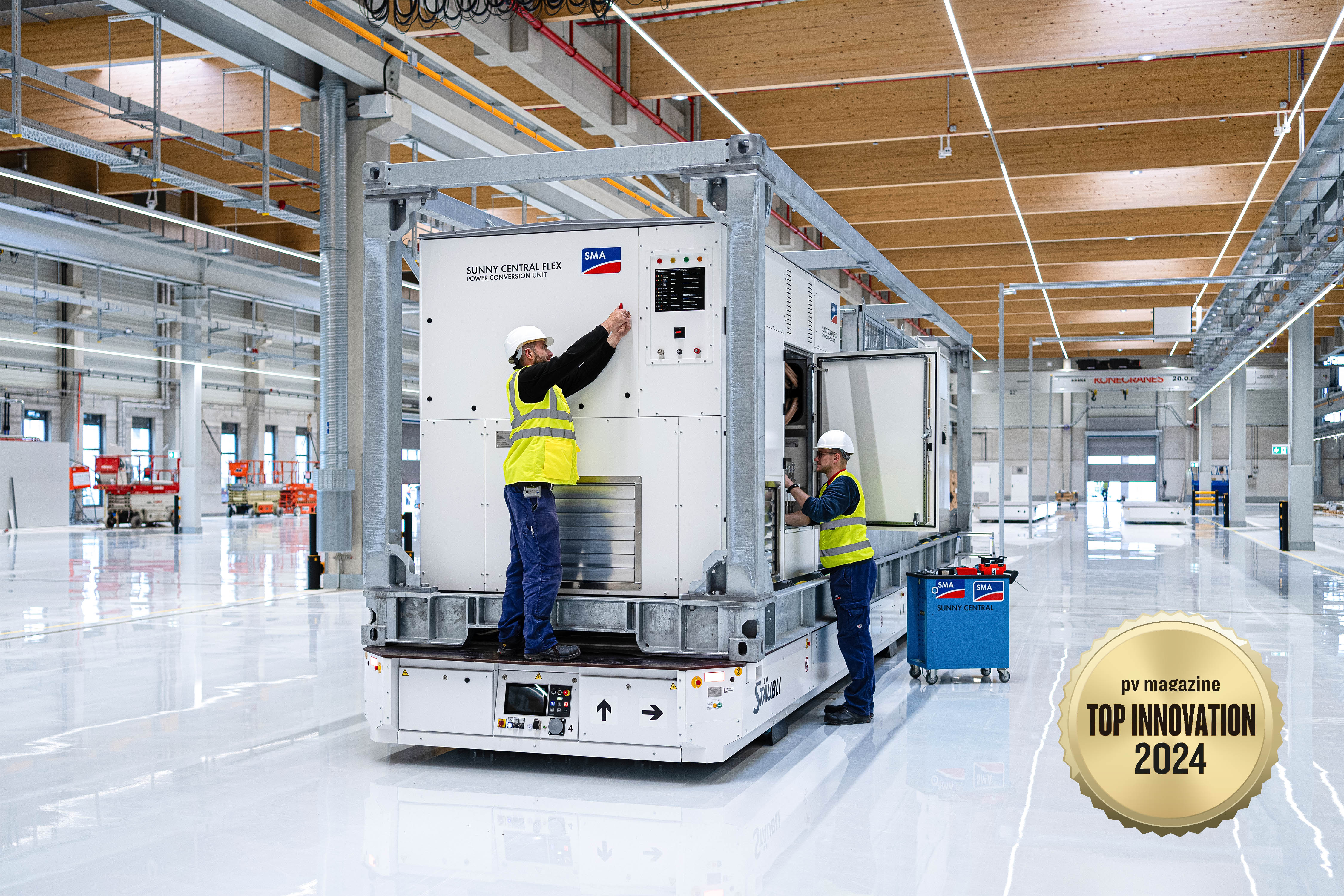 (pressebox) (Niestetal, Germany, 2024-11-21) “Battery-ready—cost-effective for project planners”: that was the assessment of pv magazine’s expert jury panel as it presented SMA with the Top Innovation Award 2024 for Sunny Central FLEX. After winning the Smarter E Award at this year's Intersolar, this accolade marks the second significant honor for SMA's innovative modular power plant solution. This solution aims to facilitate the integration of PV, battery, and hydrogen applications into large-scale projects, offering planners greater cost-efficiency. Sunny Central FLEX has now been successfully installed for the first time in a regional flagship project for renewable energies.