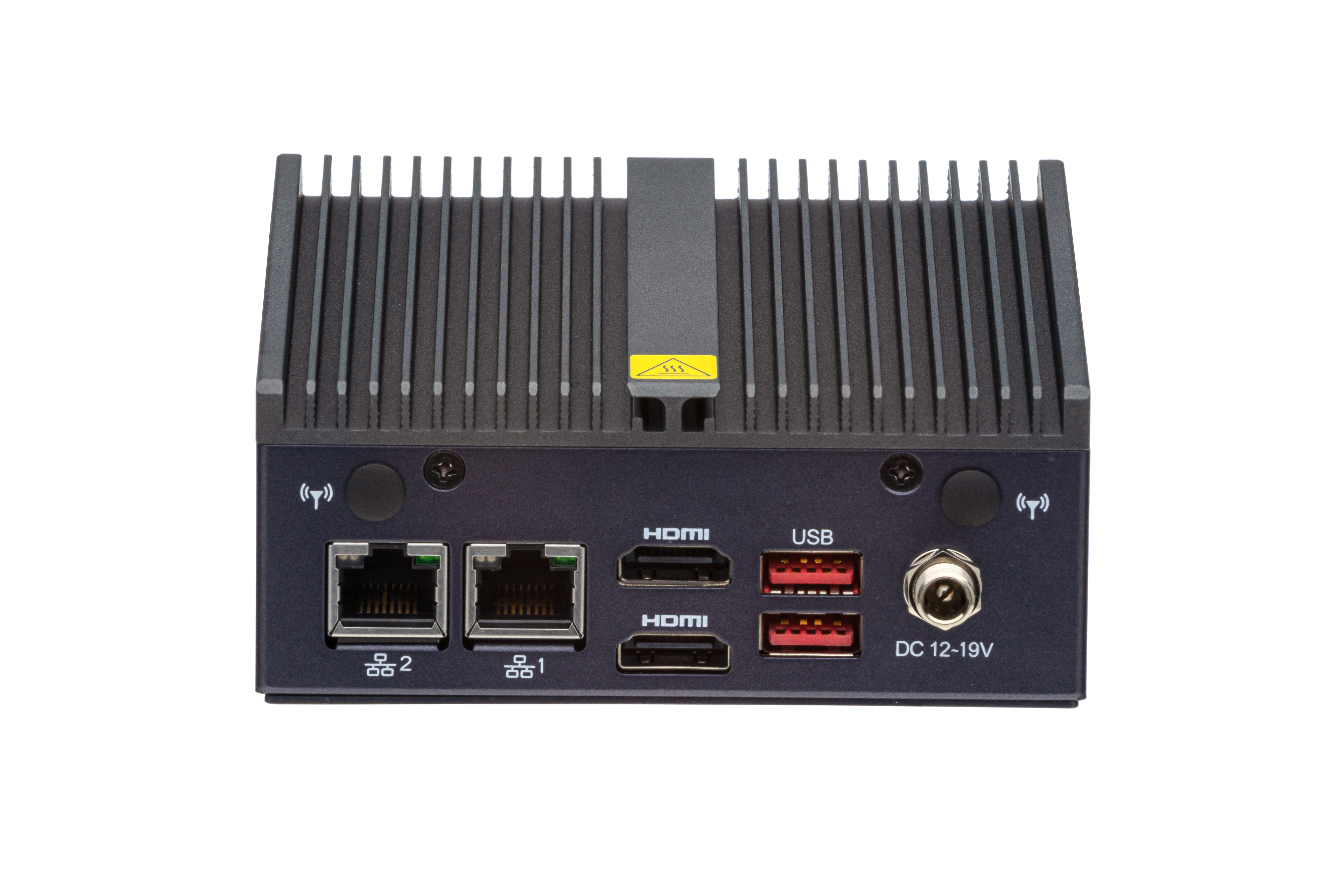 The Intel® Celeron® CPU comes with an integrated Intel® UHD graphics unit, which also enables applications in the field of digital signage. The two HDMI 2.0 ports on the back of the case ensure that content can be played on up to two screens at the same time. Of course in a resolution of 4096x2160 @ 60Hz (4K).