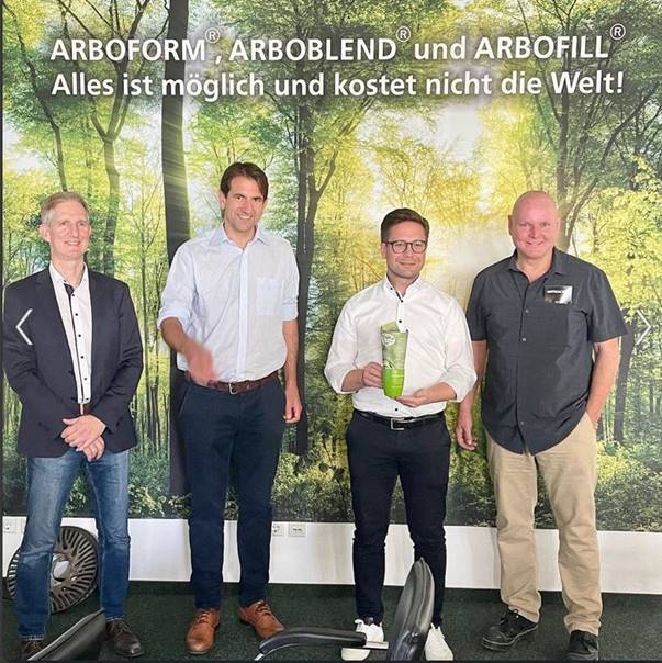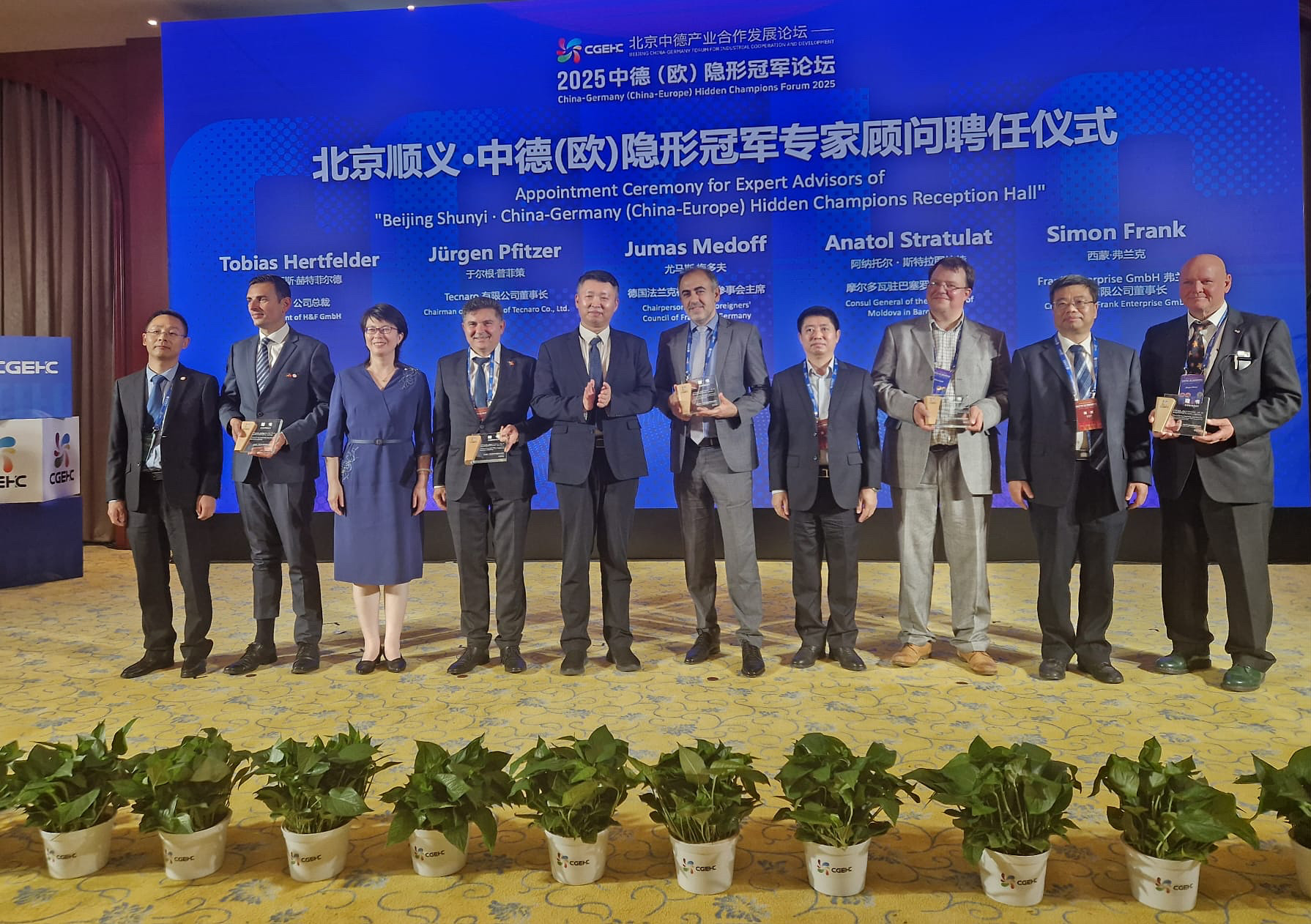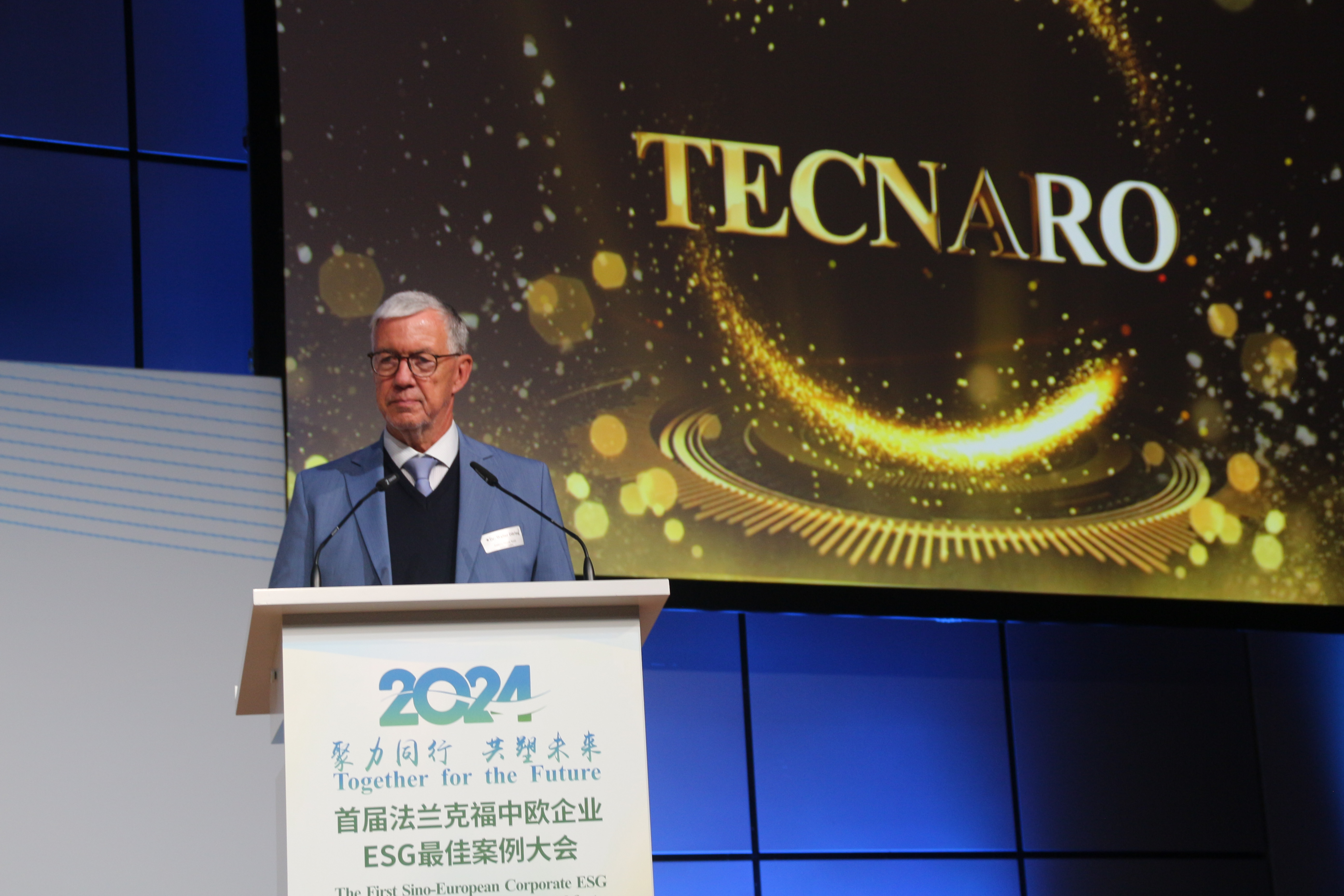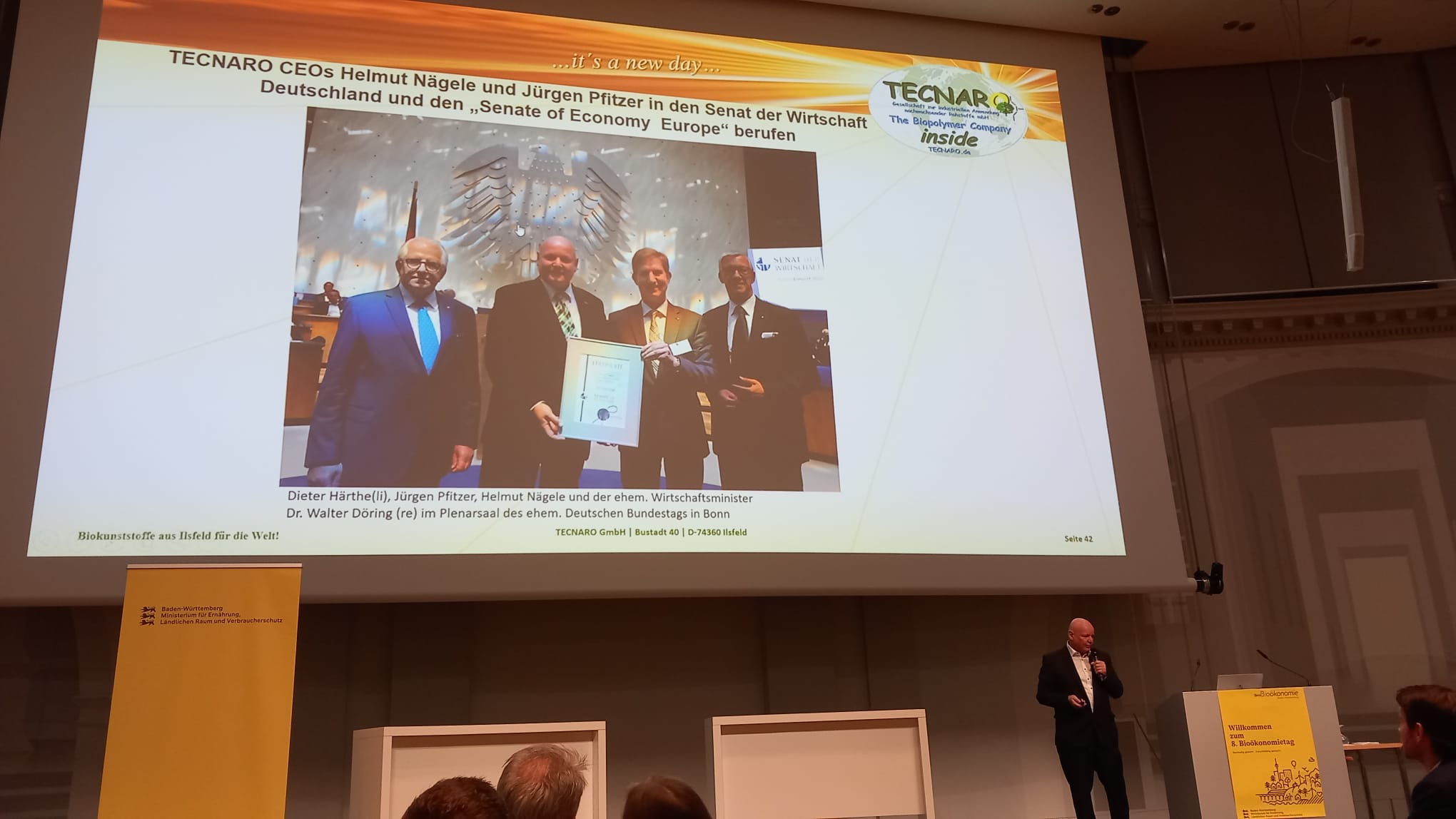 TECNARO beim Gipfeltreffen der Weltmarktführer 2020 mit dem 2. Platz des Innovation Champi-ons Award 2020 ausgezeichnet. v. l. Helmut Nägele, Jürgen Pfitzer, Beat Balzli, Varinia Bernau, Dr. Walter Döring, Gewinner Friedhelm Loh Stiftung & Co. KG, 3. Platz: RUD Ketten Rieger & Dietz GmbH u. Co. Im Carmen Würth Forum, Künzelsau, 29.01.2020, Euroforum, Foto: Thorsten Jochim