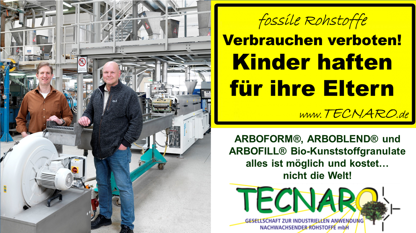 This year, Tecnaro GmbH is focusing on other topics witch are especially its 20-years anniversary and the tend-setting market movement thus arriving even under the wide knowledge of the fact that oil-based plastics has still favorable terms of tax . This special position within fiscal legislation goes back to the 60’s and has today only little public awareness. In this context, it is remarkable that at that time, their justification was that oil-based plastic waste would not be burnt, in contrast to fuel.