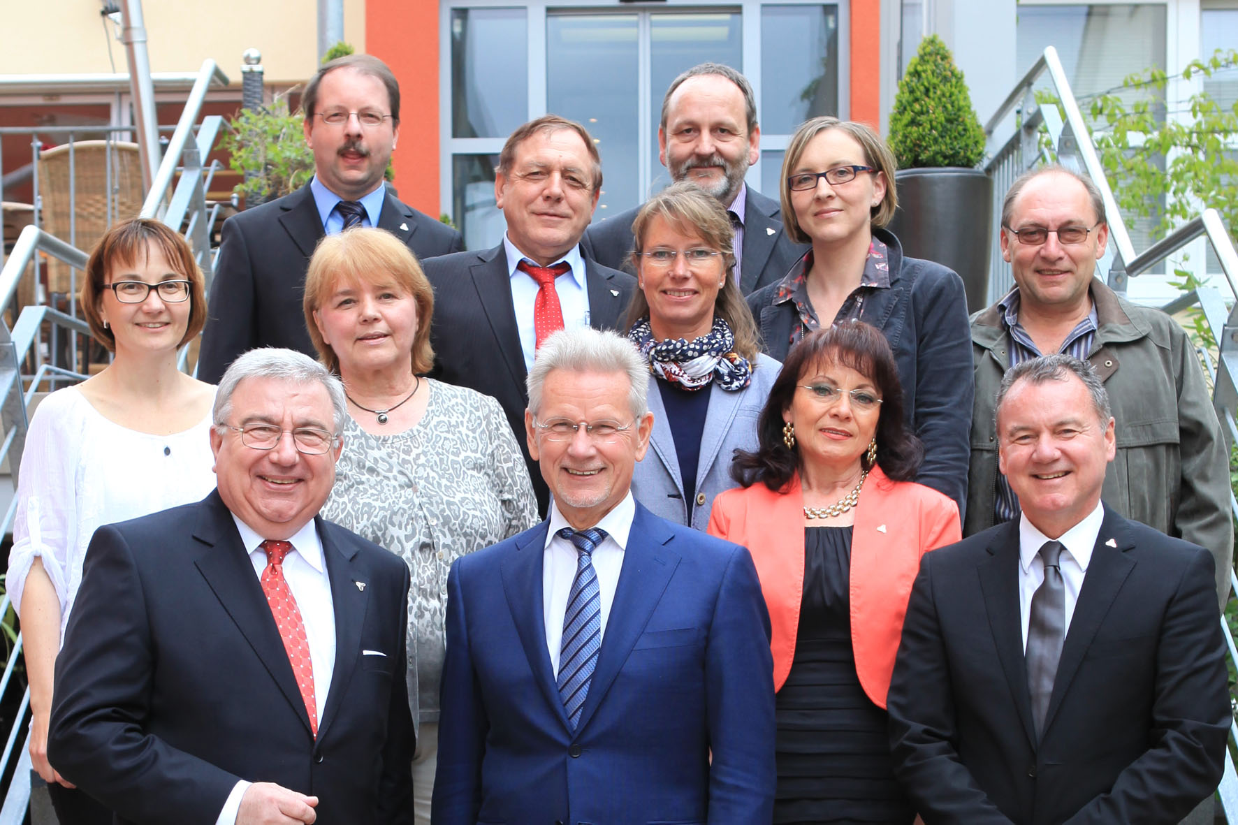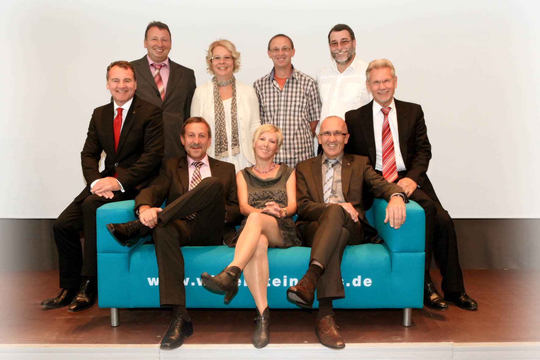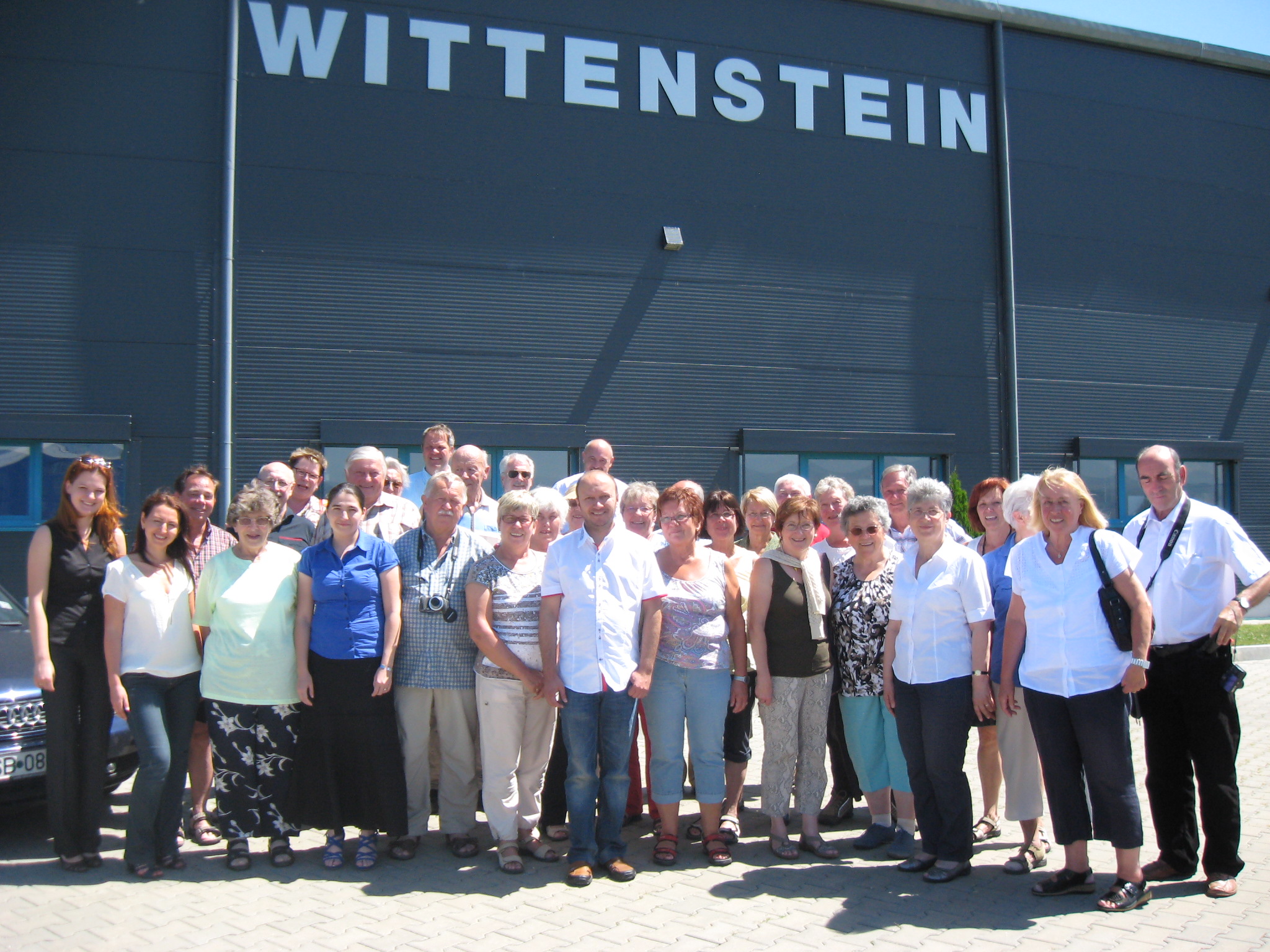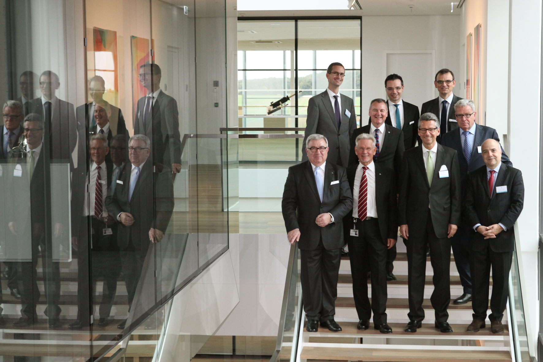 Die 25er Jubilare und Rentner der WITTENSTEIN SE gemeinsam mit dem Vorstand, dem Leiter Human Resource Management und dem Betriebsratsvorsitzenden v.l.n.r.: (Oliver Kössel, Niko Neckermann, Hermann Esau, Karl Sigloch, Ernst Kaltdorf, Klaus Hitzfelder, Reinhard Oppitz, Susanne Fries, Ulrich May, Josef Gitter, Andreas Pelz, Hartmut Kampa, Dr. Anna-Katharina Wittenstein und Erik Roßmeißl