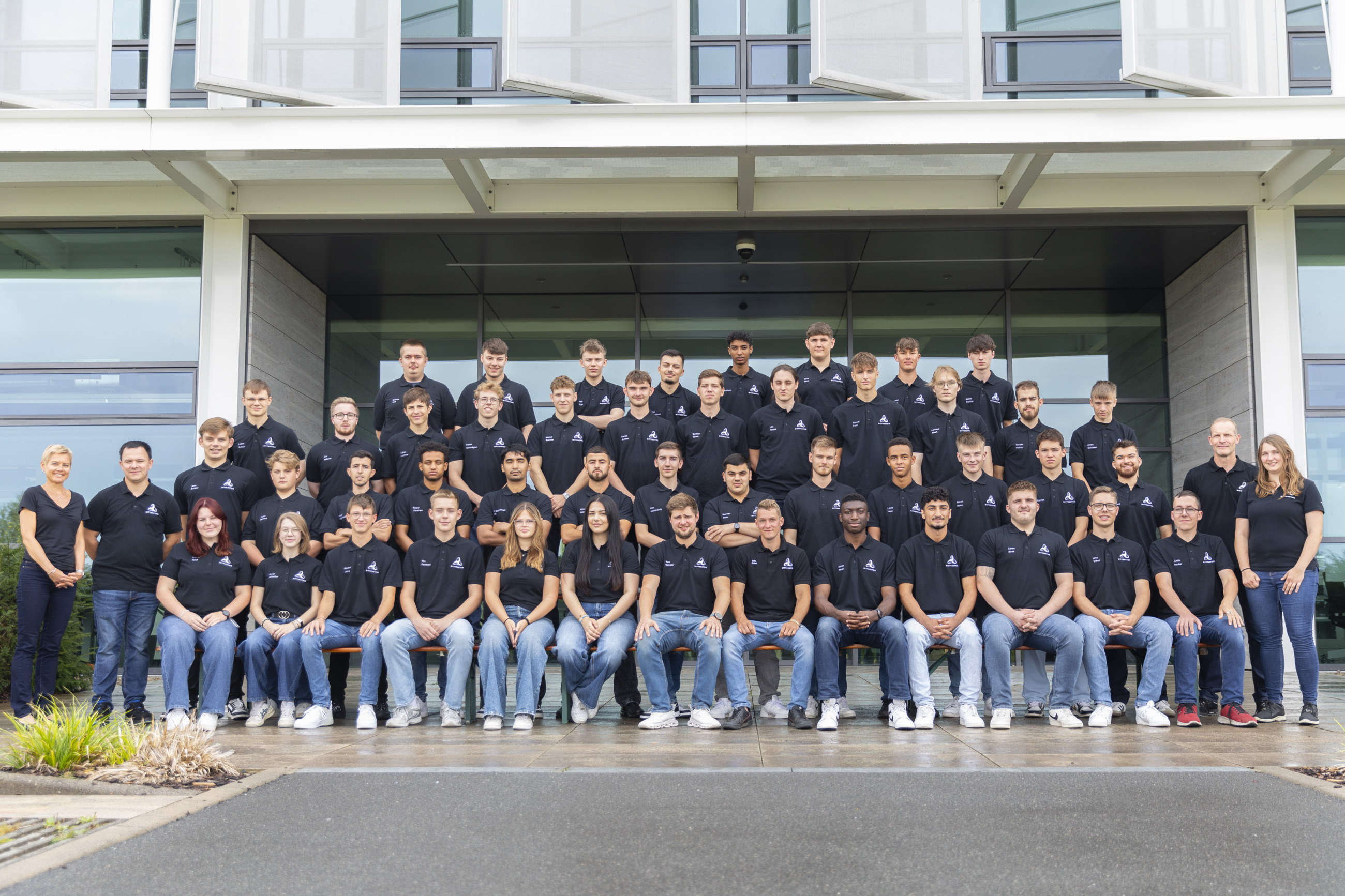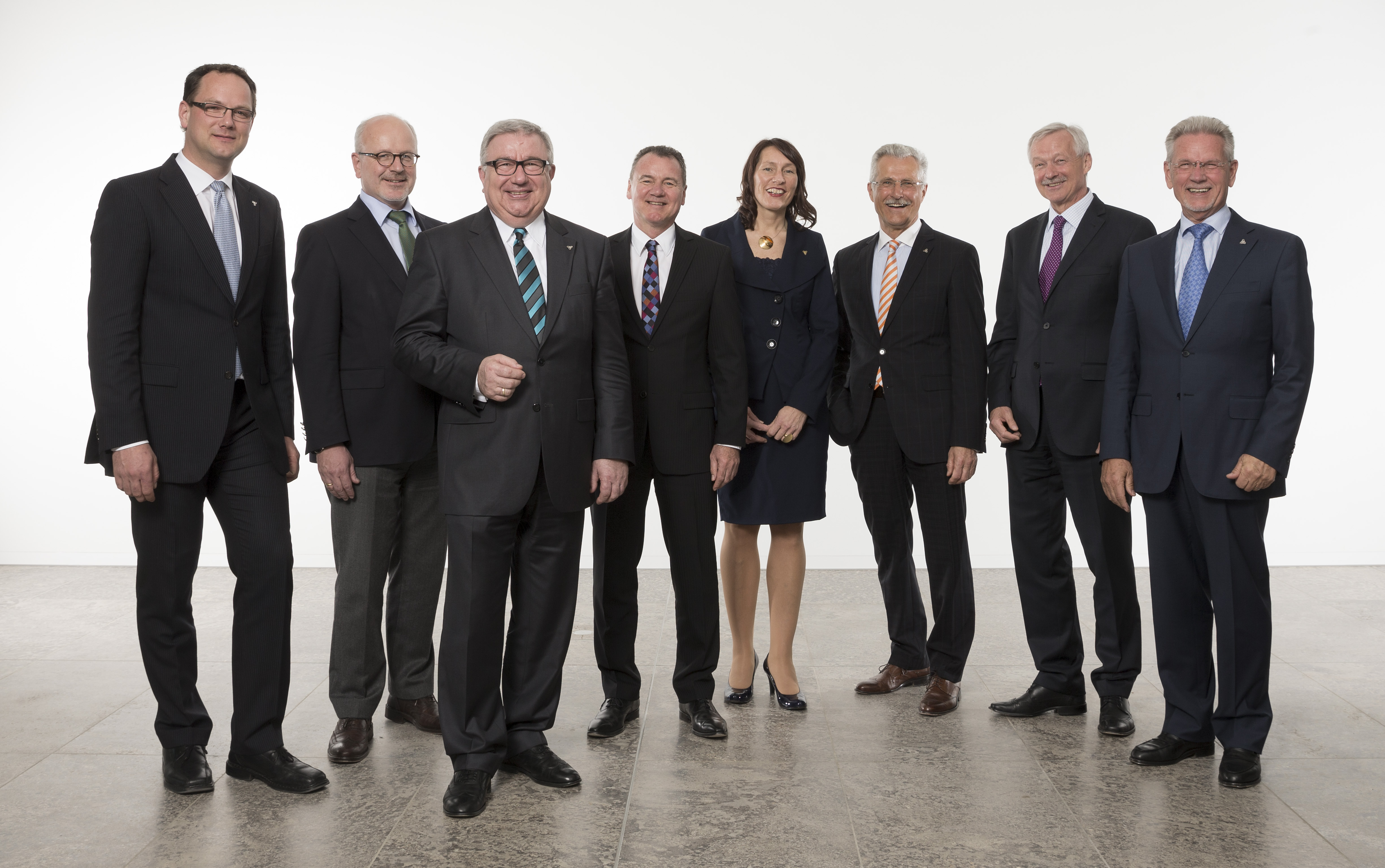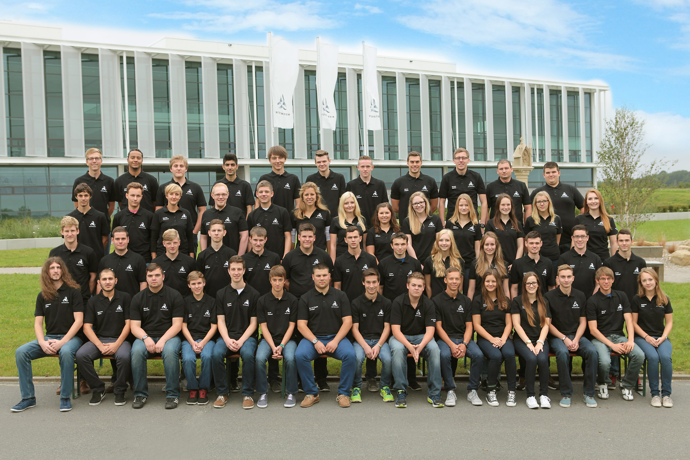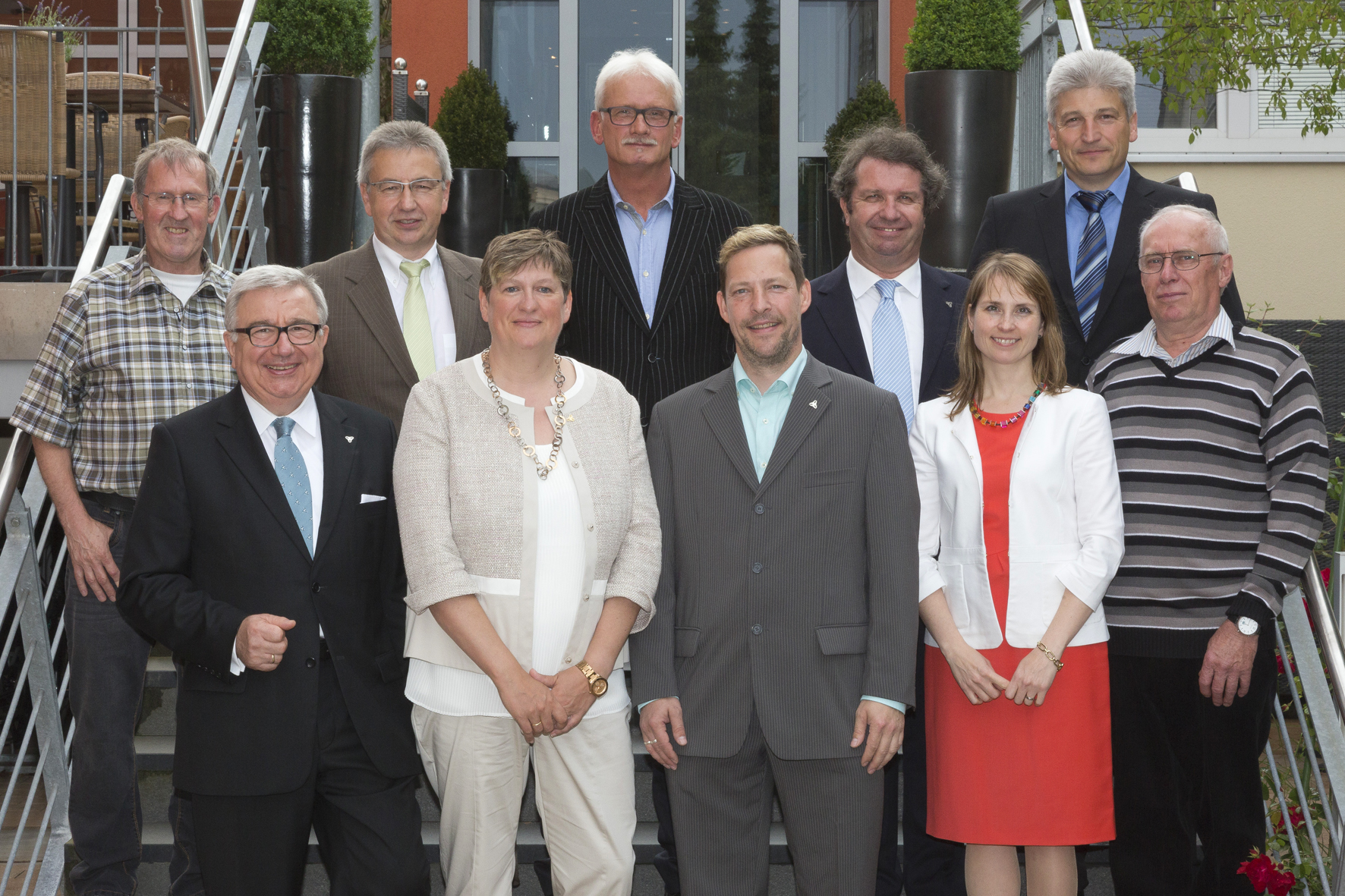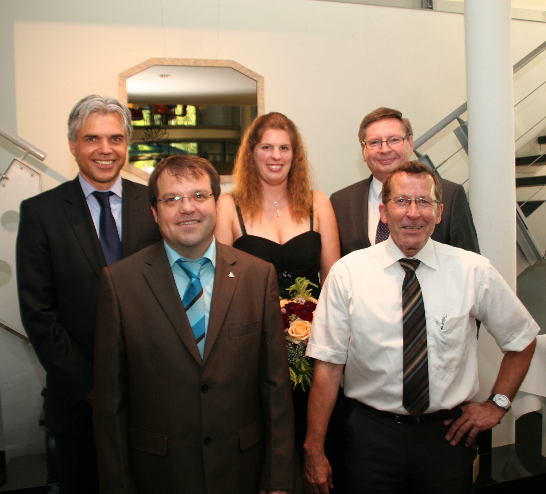 Die 25er Jubilare und Rentner der WITTENSTEIN SE gemeinsam mit dem Vorstand, dem Leiter Human Resource Management und dem Betriebsratsvorsitzenden v.l.n.r.: (Oliver Kössel, Niko Neckermann, Hermann Esau, Karl Sigloch, Ernst Kaltdorf, Klaus Hitzfelder, Reinhard Oppitz, Susanne Fries, Ulrich May, Josef Gitter, Andreas Pelz, Hartmut Kampa, Dr. Anna-Katharina Wittenstein und Erik Roßmeißl
